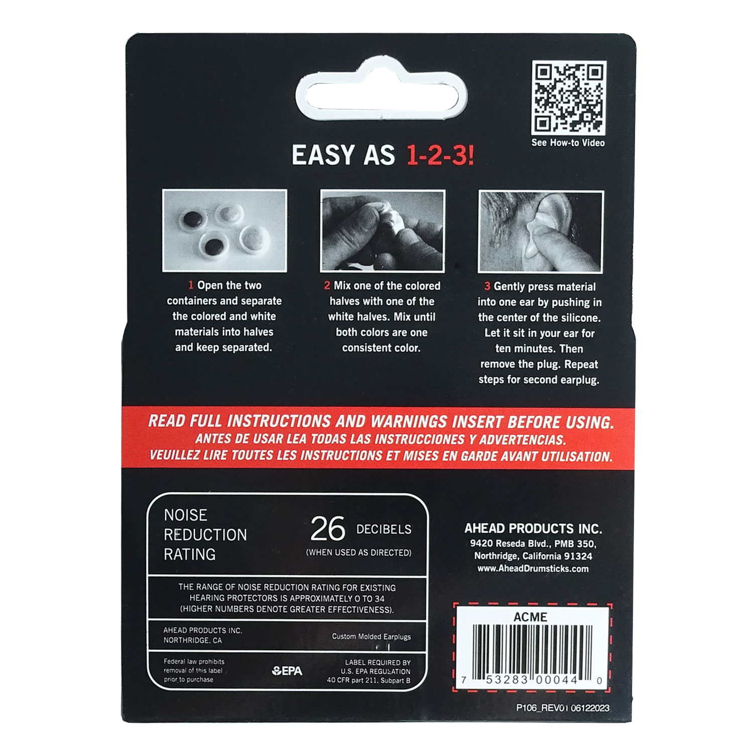 Die Ahead ACME passen sich perfekt jeder Ohrgröße und jedem Gehörgang an. Das Zwei-Komponenten-System ermöglicht jedem Musiker, sich seinen eigenen, individuell angepassten Gehörschutz, herzustellen.Einfach die beiden getrennt gelieferten Materialien (nicht-toxisch, hypoallergen und EPA-genehmigt) vermischen, in die Ohren drücken, 12 Minuten warten, fertig. Im Lieferumfang ist ein kleiner Transportbeutel enthalten. Die NIH (National Institute on Deafness and Other Communication Disorders) hat mit ihren Messungen folgende, schalldruckabhängige Dämmwerte errechnet:- Stille - 0 DB