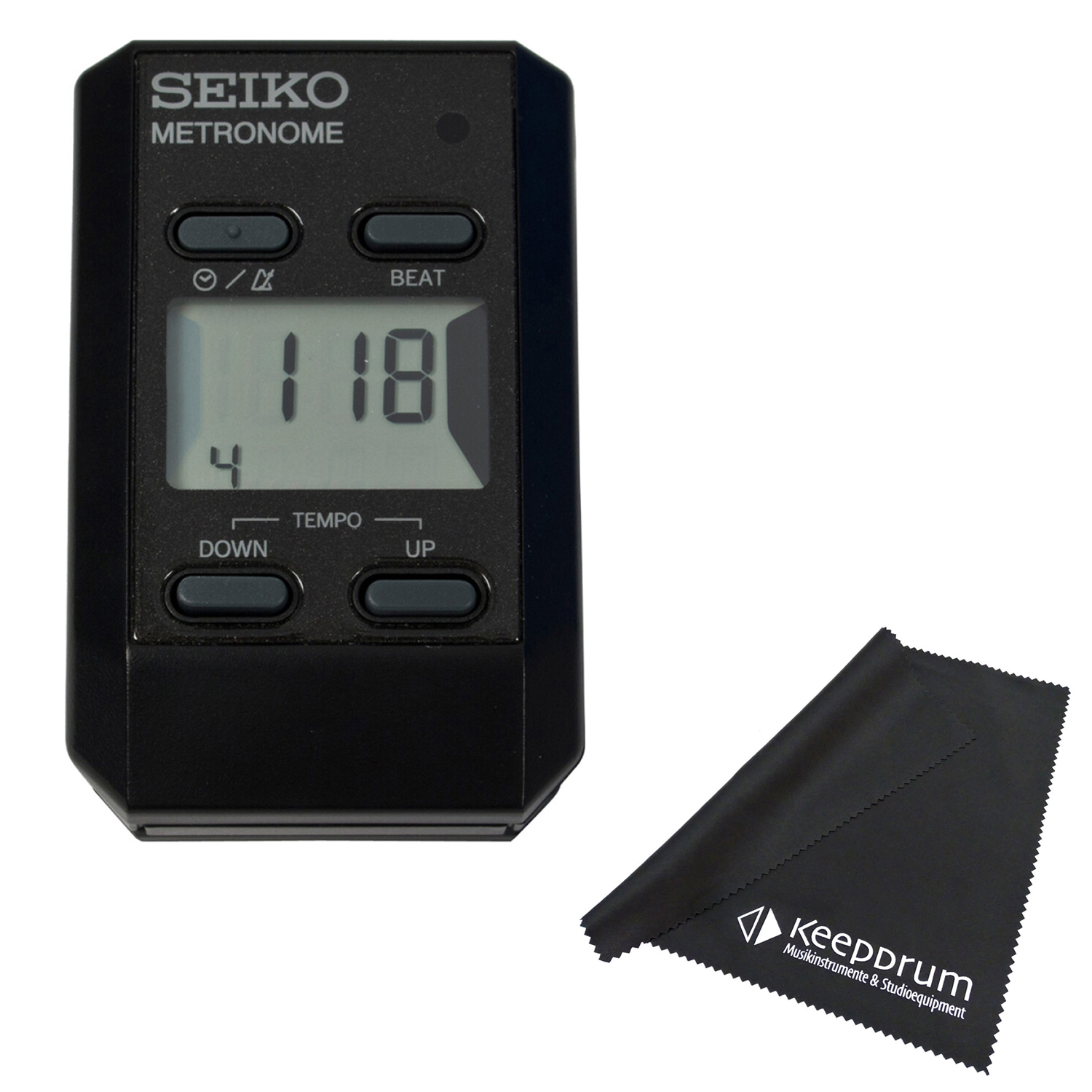 Uhranzeige, was es zu einem nützlichen Alltagsbegleiter für Musiker macht. Das Gerät wird mit einer handelsüblichen CR2032 Knopfzelle betrieben. Mit seinen kompakten Abmessungen von 37 x 57 x 34 mm und einem Gewicht von nur 35 g ist das Seiko DM-51 ein