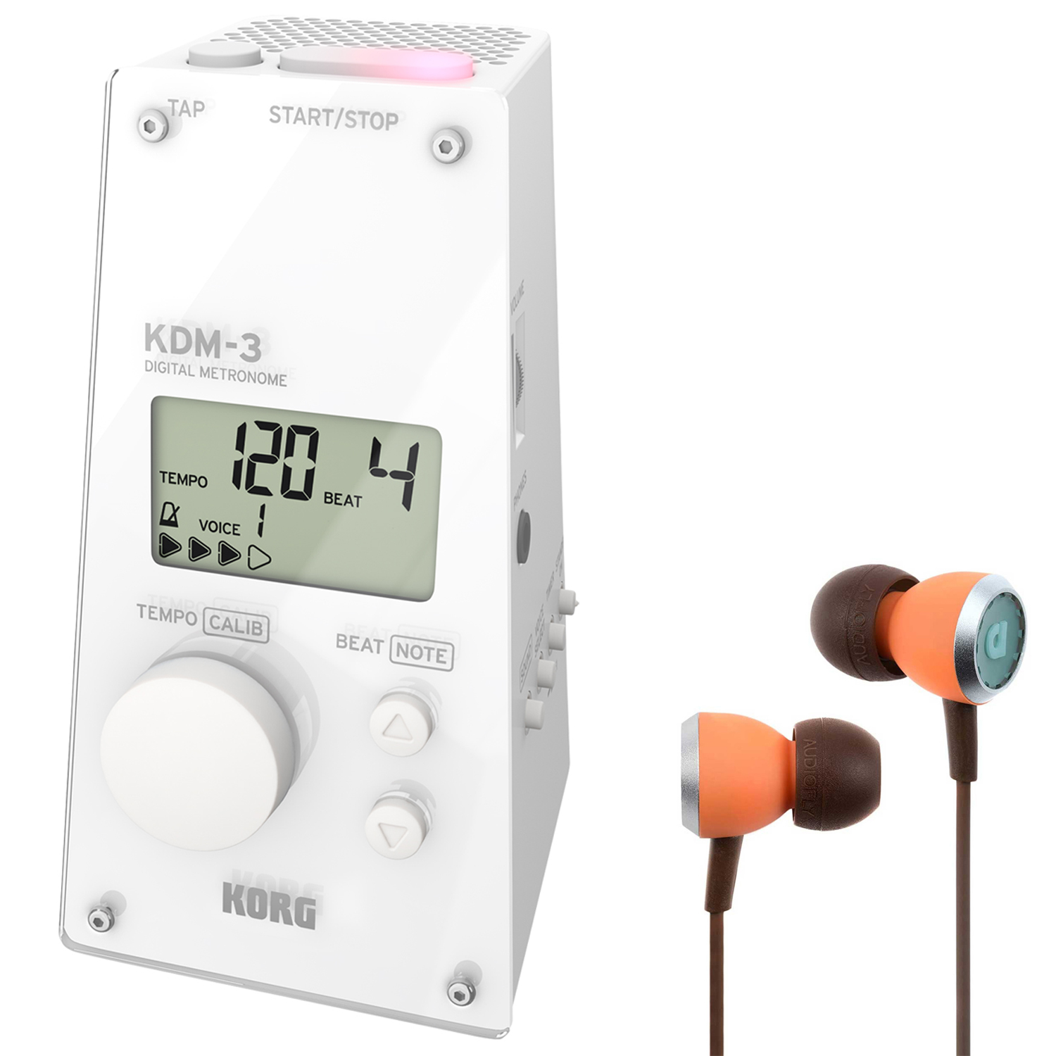 Korg Metronom KDM-3 Taktgeber Digital Weiss mit In-Ear Kopfhörern