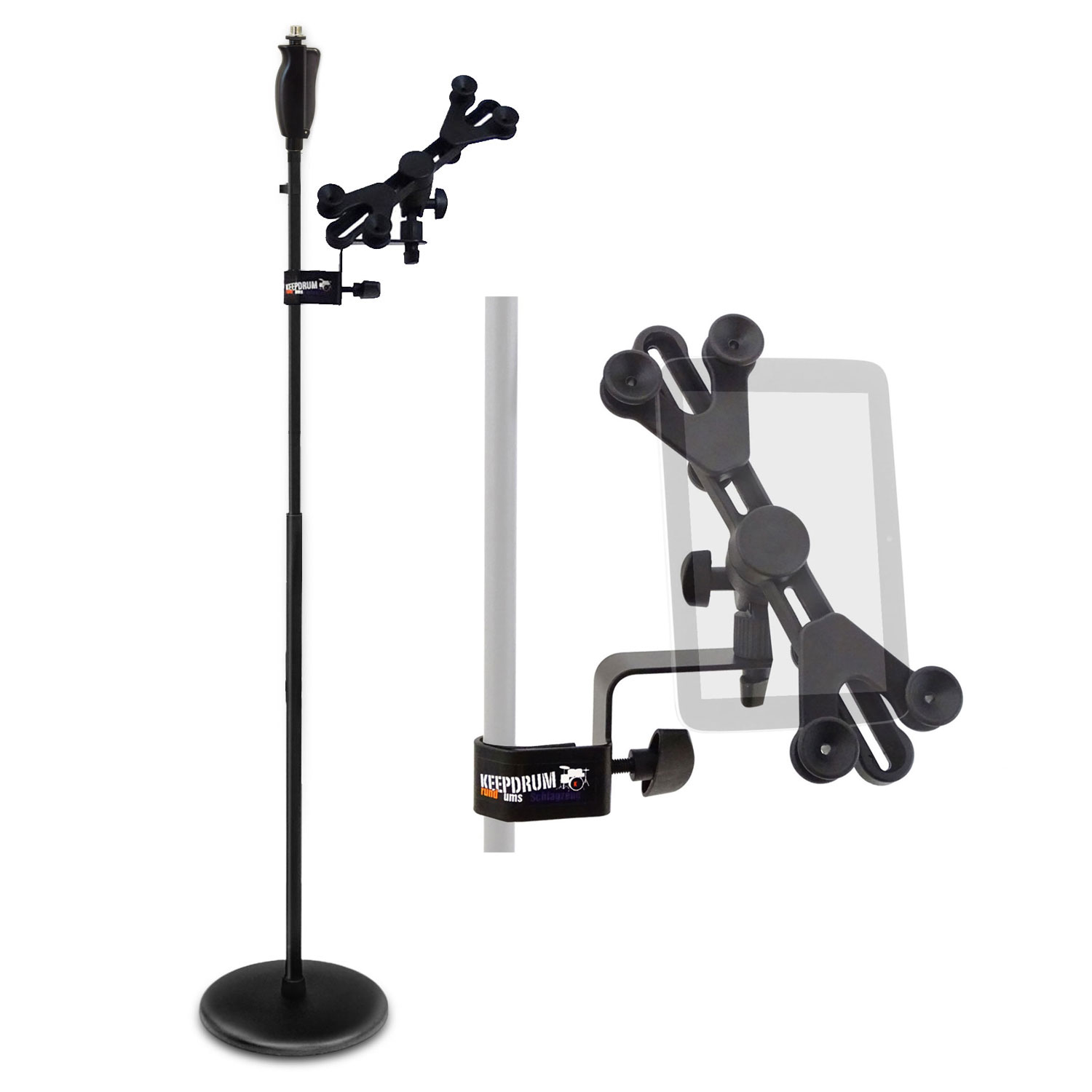 Die keepdrum Tablet-PC Halterung eignet sich für Tablets und iPads mit einer Größe von 7 Zoll bis 14 Zoll. Das Stativ bietet zuverlässigen Halt für Ihr Gerät und kann durch die mitgelieferte Rohrklemme an einem Mikrofonständer (Rohrdurchmesser 10-30mm) montiert werden.