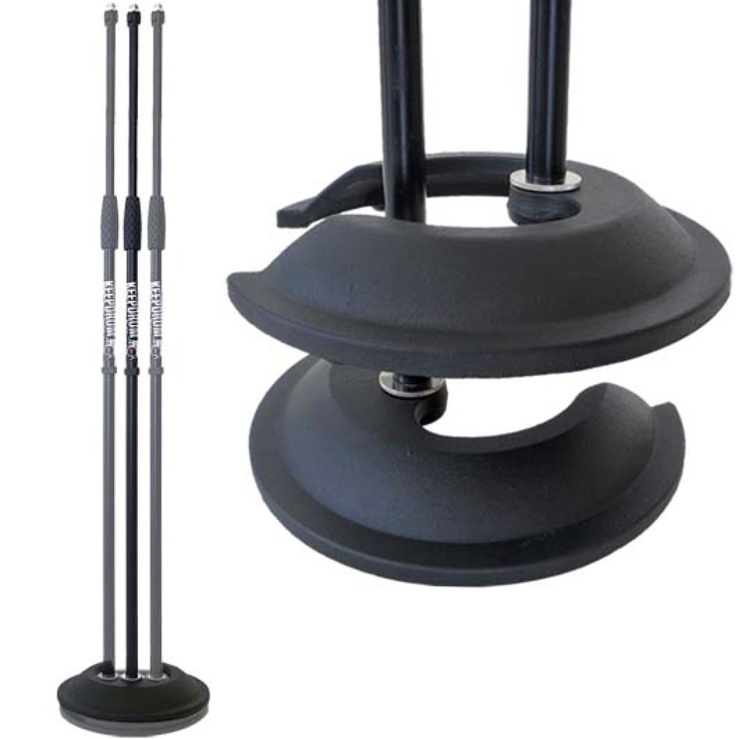 An der Unterseite des schweren Sockels befinden sich gummierte Füßchen wodurch Kratzer am Fußboden vermieden werden. Die durchdachte Form des Sockels ermöglicht es bis zu 5 Mikrofonstative übereinander zu stapeln. Der genoppte Griff ermöglicht ein schnelles Verstellen der Höhe des Mikrofonständers. Der MS096 verfügt über ein 3/8 Zoll Gewinde, sowie ein Reduziergewinde von 5/8" auf 3/8", das im Lieferumfang enthalten ist. +keepdrum MSA067 Mikrofon-Galgen
