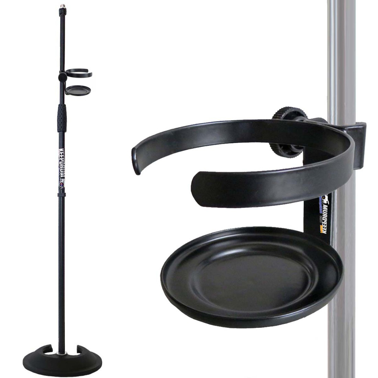 An der Unterseite des schweren Sockels befinden sich gummierte Füßchen wodurch Kratzer am Fußboden vermieden werden.Die durchdachte Form des Sockels ermöglicht es bis zu 5 Mikrofonstative übereinander zu stapelnDer genoppte Griff ermöglicht ein schnelles Verstellen der Höhe des MikrofonständersDer MS096 verfügt über ein 3/8" Gewinde, sowie ein Reduziergewinde von 5/8" auf 3/8", das im Lieferumfang enthalten ist.+ keepdrum DH Drinkholder Universal GetränkehalterDer keepdrum Drinkholder ist ein anschraubbarer Getränkehalter der an Mikrofonständer sowie Notenständer mit einem maximalen Rohrdurchmesser von 20mm angeschraubt werden kann. Er bietet eine stabile Abstellmöglichkeit für Flaschen,Gläser und Tassen. Durch die Aussparung an der Frontseite des Aufnahmeschachtes können auch Tassen mit Henkel problemlos abgestellt werden.Durch die schützende Schaumstoff-Fläche und die gummierte Feststellschraube hinterlässt der keepdrum Drinkholder keinerlei Spuren oder Kratzer.Details: - Stabiler Halter zum Abstellen von Getränken