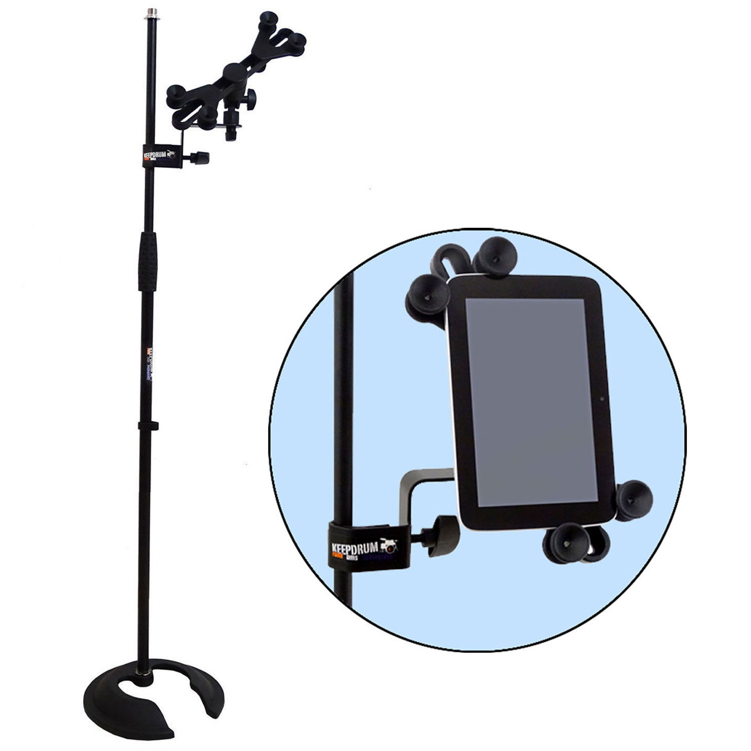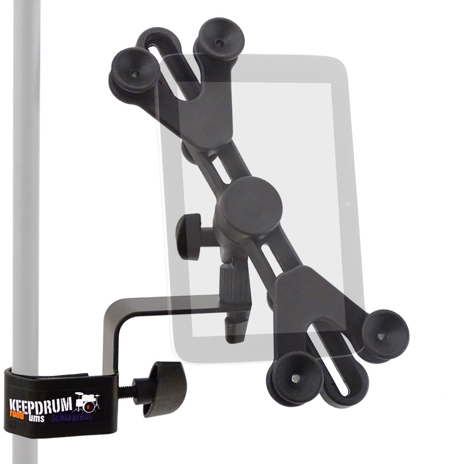 Die keepdrum Tablet-PC Halterung eignet sich für Tablets und iPads mit einer Größe von 7 Zoll bis 14 Zoll. Das Stativ bietet zuverlässigen Halt für Ihr Gerät und kann durch die mitgelieferte Rohrklemme an einem Mikrofonständer (Rohrdurchmesser 10-30mm) montiert werden.