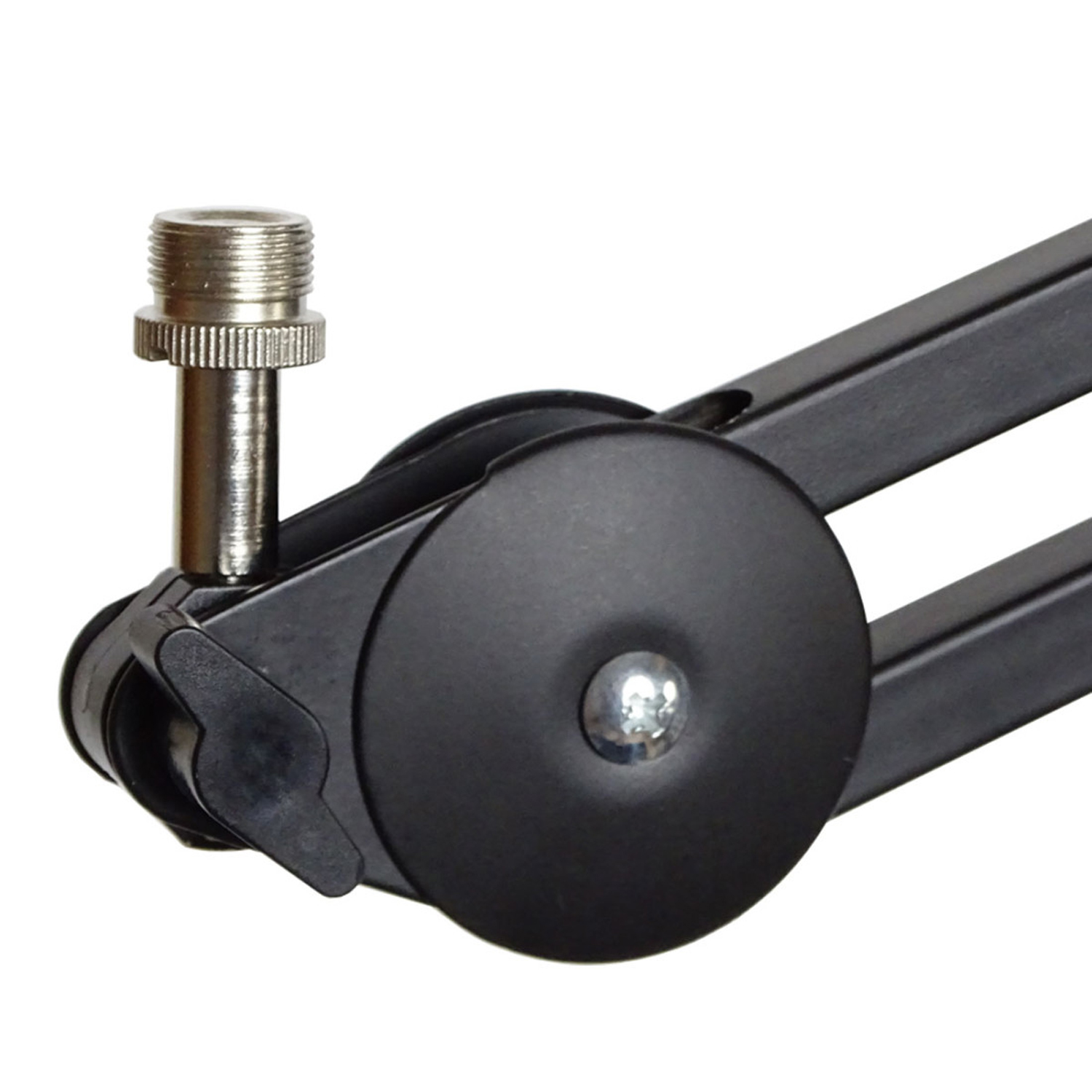 Der Mikrofon-Gelenkarm ist aus Metall gefertigt und eignet sich durch die extra starken Zugfedern im Inneren des Ständers auch für schwere Mikrofone bis zu 800g. Mit Hilfe der Tischklammer kann das Stativ mit wenigen Handgriffen an Tischplatten mit einer Stärke bis zu 50mm befestigt werden.