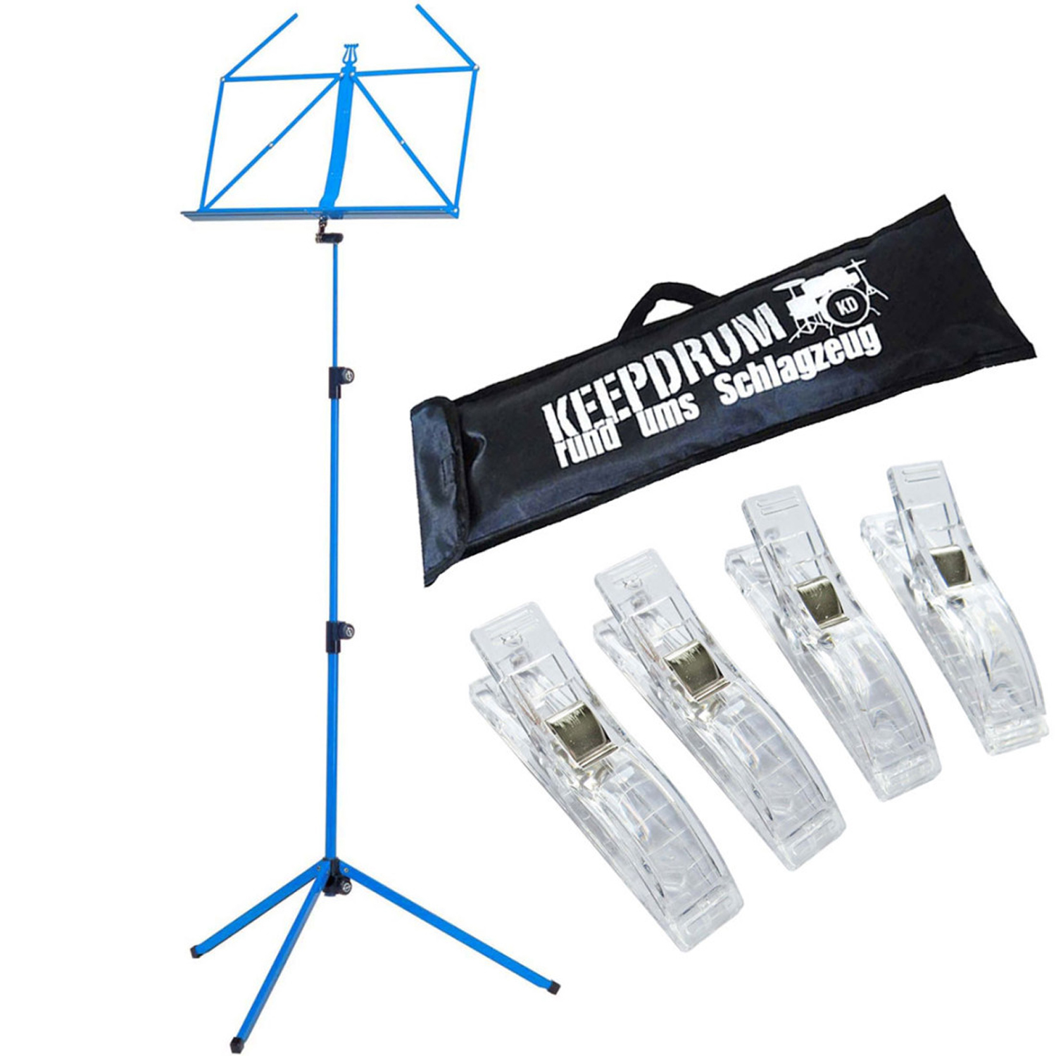 K&M 100-1 Notenständer Blau mit Tasche und Klammern