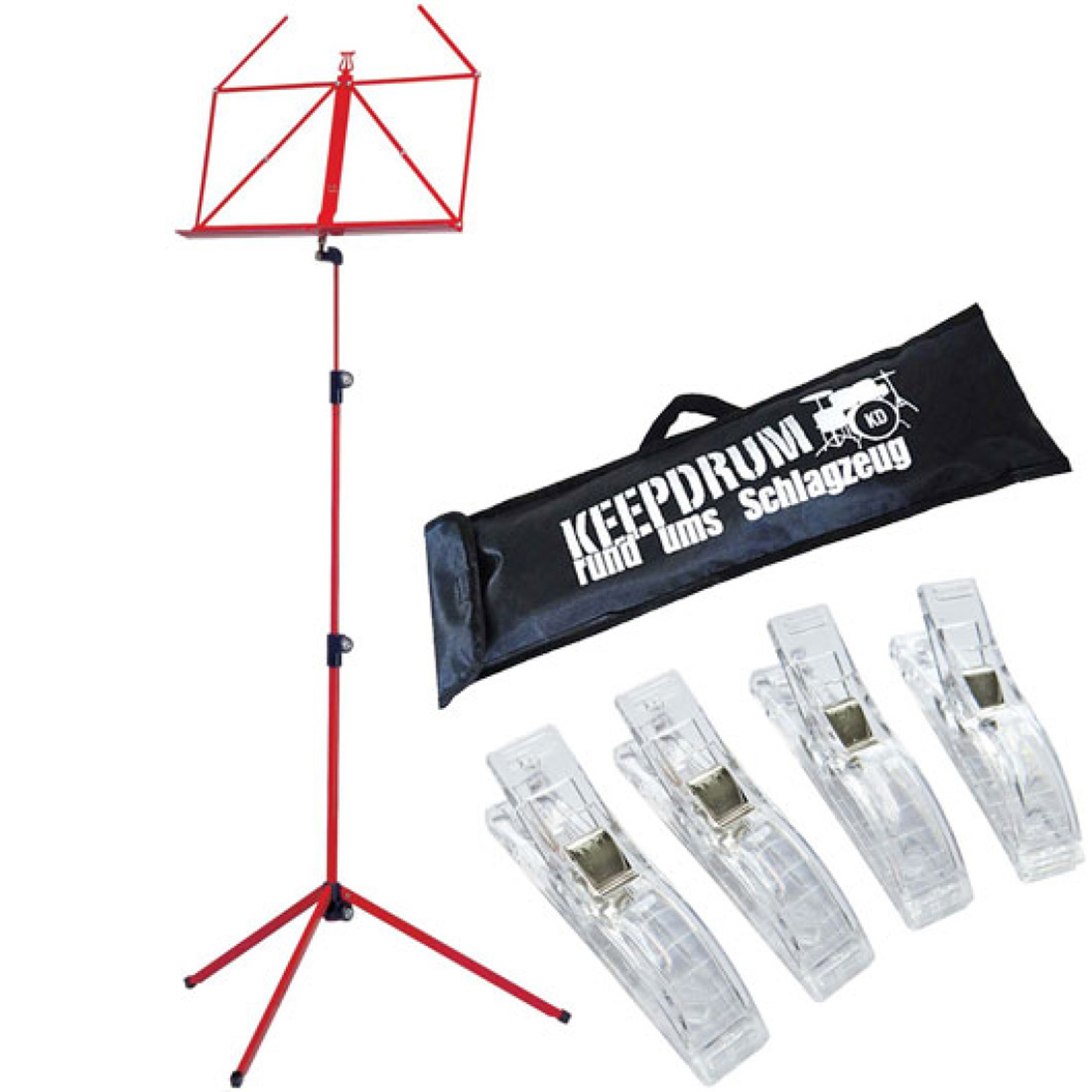 K&M 100-1 Notenständer Rot -Tasche mit Klammern