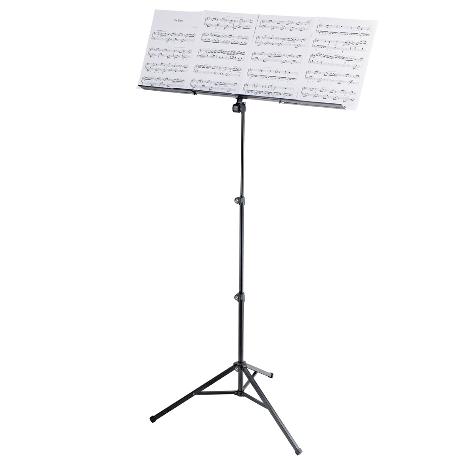 Das Notenpult ist 2-fach ausziehbar und kann in einer Höhe von 580 bis 1.220 mm verstellt werden. Für den Transport kann das Notenpult platzsparend zusammengelegt werden.