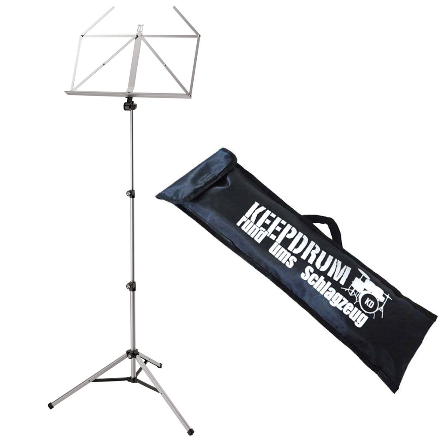 Die Notenablage hat die Maße von 485 x 240 x 42 mm und bietet genügend Platz zur Ablage von Notenblättern und kleineren Ordnern. Der Notenpult ist aus Stahl gefertigt und bietet durch seine dreibeinige Strebenkonstruktion zuverlässigen Stand.