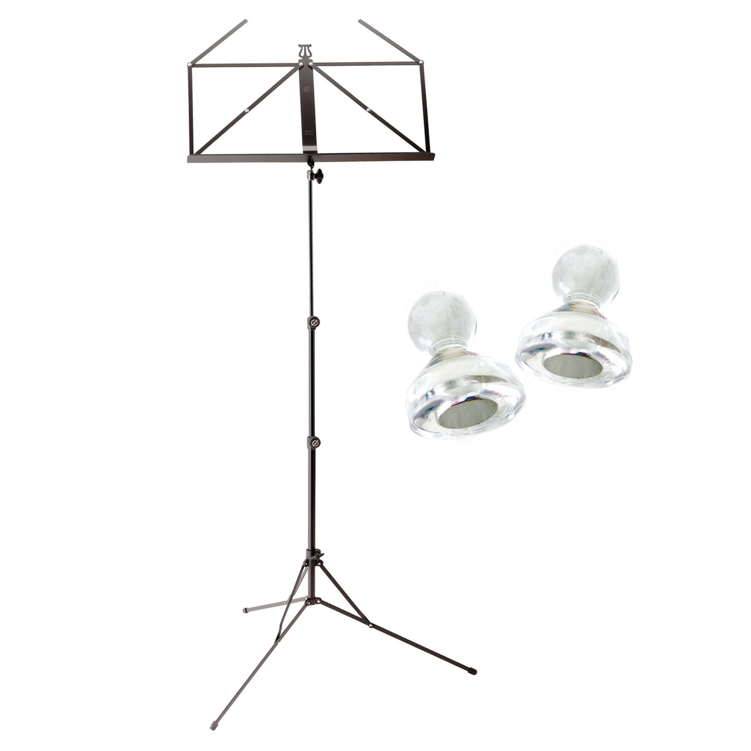 Das Stativ ist in der Höhe 2-fach ausziehbar von 650-125mm. Die Notenauflage bietet mit 440x215mm genügend Platz für Notenblätter, Notenhefte oder schmale Ordner. Der Winkel der Notenablage kann nach Wunsch eingestellt werden. Mit den zwei ausklappbaren Blatthaltern fixieren SieIhre Noten schnell und einfach.