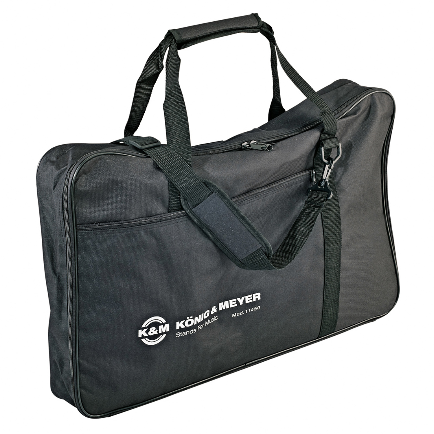 Die K-M 11450 Tragetasche eignet sich für Orchesterpulte der 118/1er Serie sowie weitere Modelle mit ähnlichen Maßen. Die Tasche hat zwei Innenfächer sowie eine zusätzliche Vortasche und bietet damit genügend Platz für Notenpult und Zubehör wie Noten.