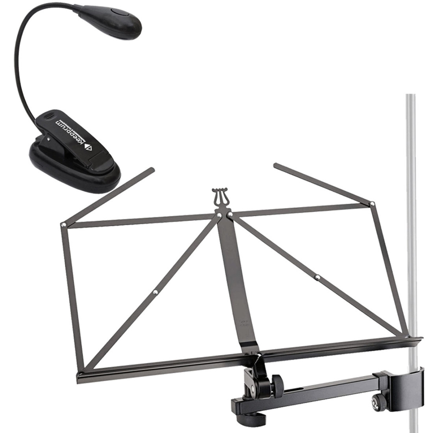 Die keepdrum Notenpult-Leuchte ist eine flexible LED-Lampe mit zwei Helligkeitsstufen, die durch ihre Halteklammer mit einem Handgriff befestigt werden kann.