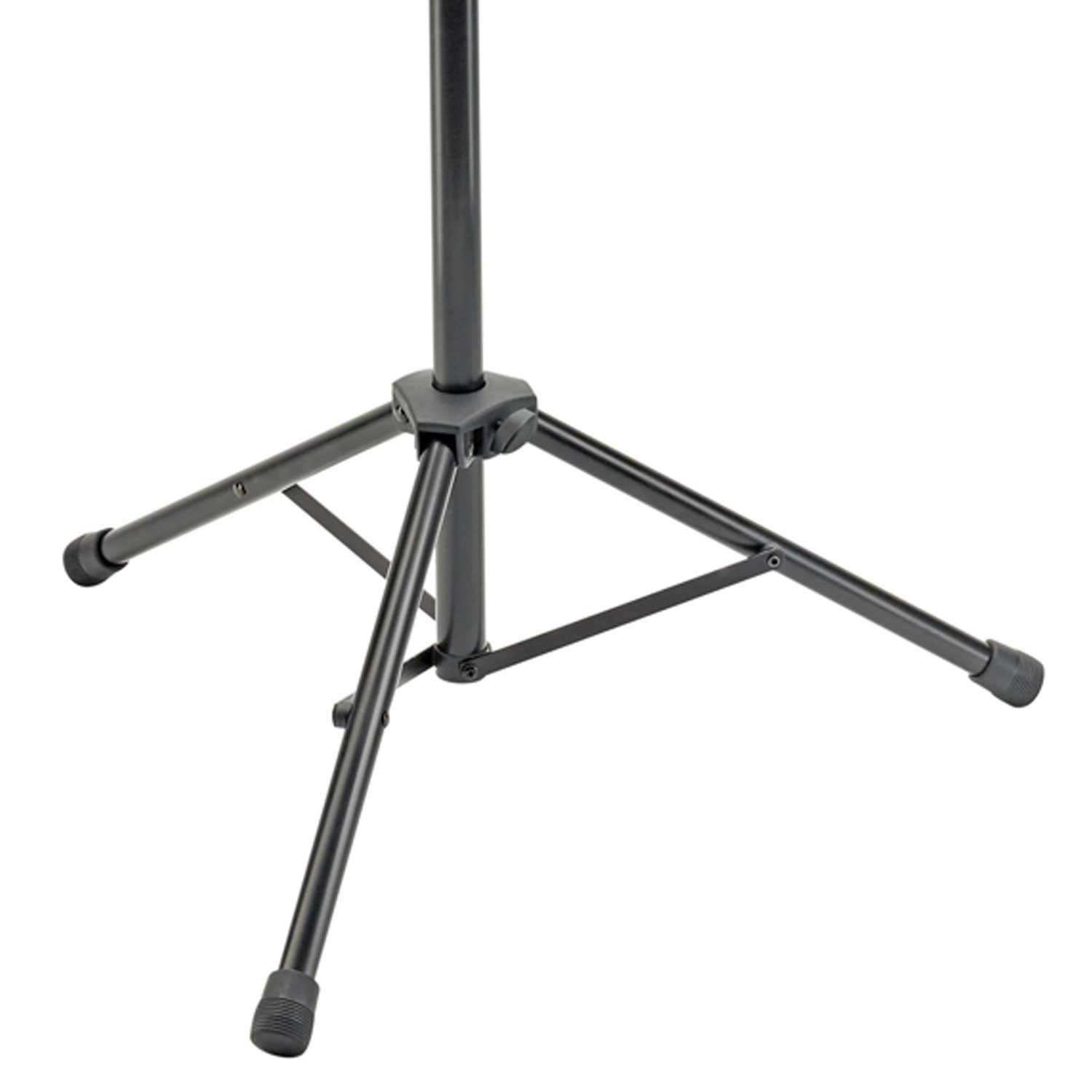 Das K-M 11870 ist ein pulverbeschichtetes Aluminium-Notenpult mit Stahlplatte. Die Notenpultplatte wird mit einem leicht zu bedienenden Schnellverschluss am Stativ befestigt bzw. wieder gelöst. Dadurch ist das Pult schnell und einfach auf- und wieder abgebaut.