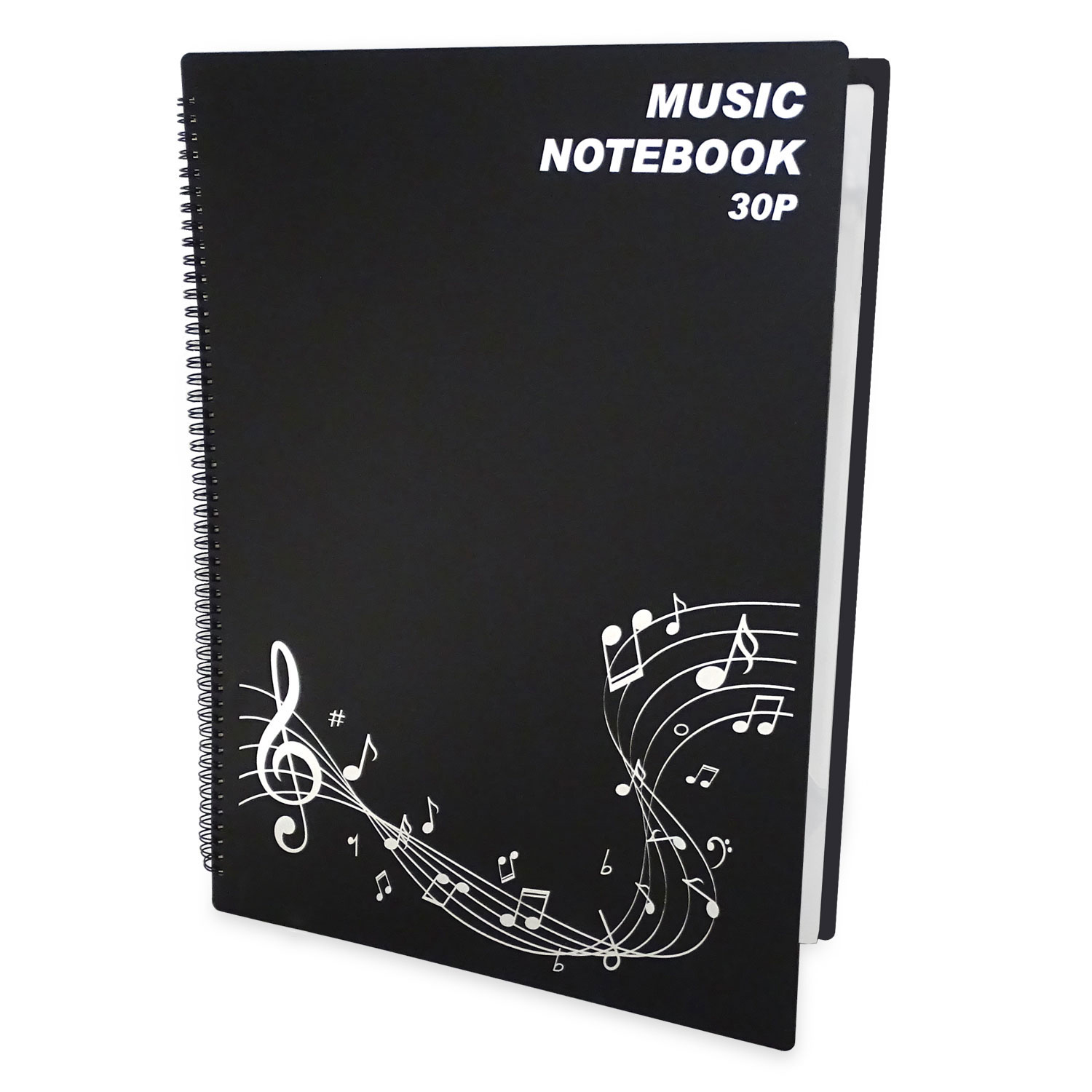 Damit können bis zu 30 DIN A3 Blätter oder alternativ 60 DIN A4 Blätter eingeheftet werden. Durch die Spiralbindung bleibt die Mappe stets komplett geöffnet und die Notenblätter sind optimal lesbar.