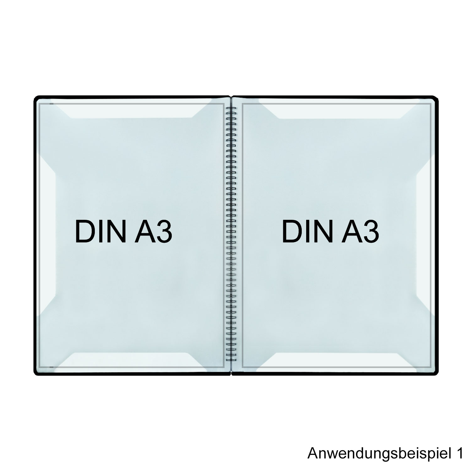 - Verwendbar für DIN A3 oder 2x DIN A4 je Seite