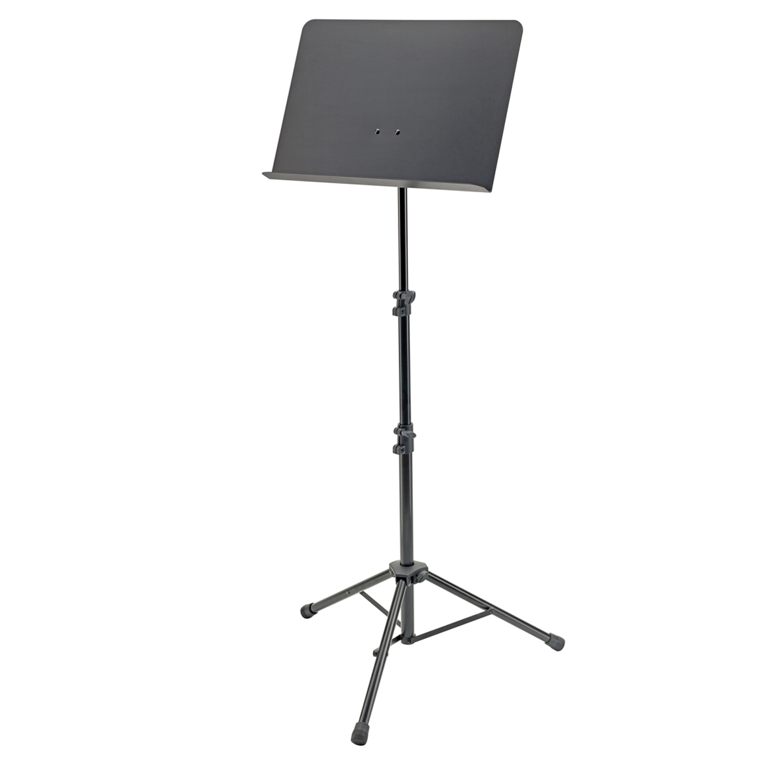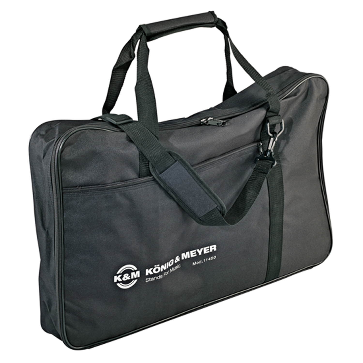 Die drei Fußrohre mit Stützstreben sorgen für einen stabilen und festen Stand des Notenpults. Die große Notenauflage ist durchgängig und hat eine Tiefe von 50mm, sodass die Noten sicher aufliegen. + K-M 11450 Tragetasche: