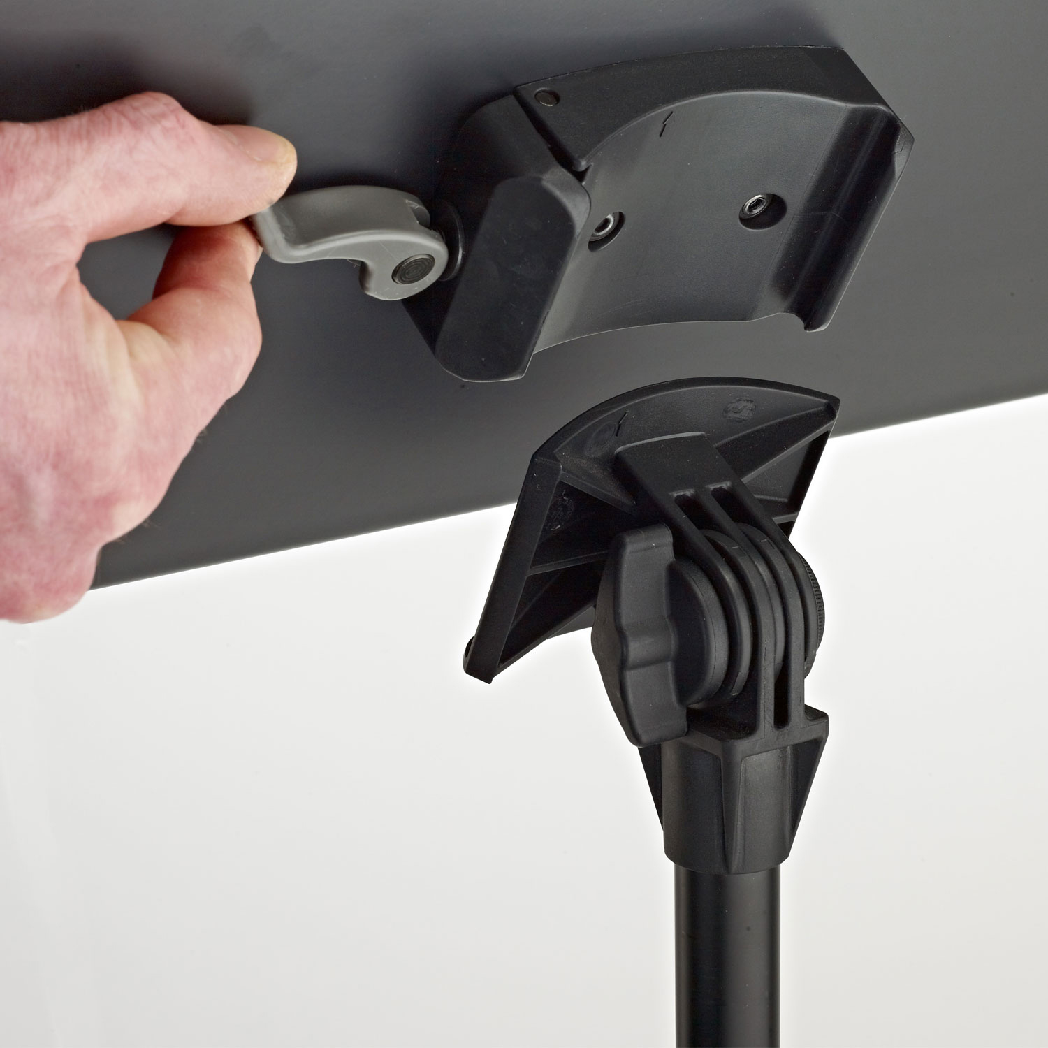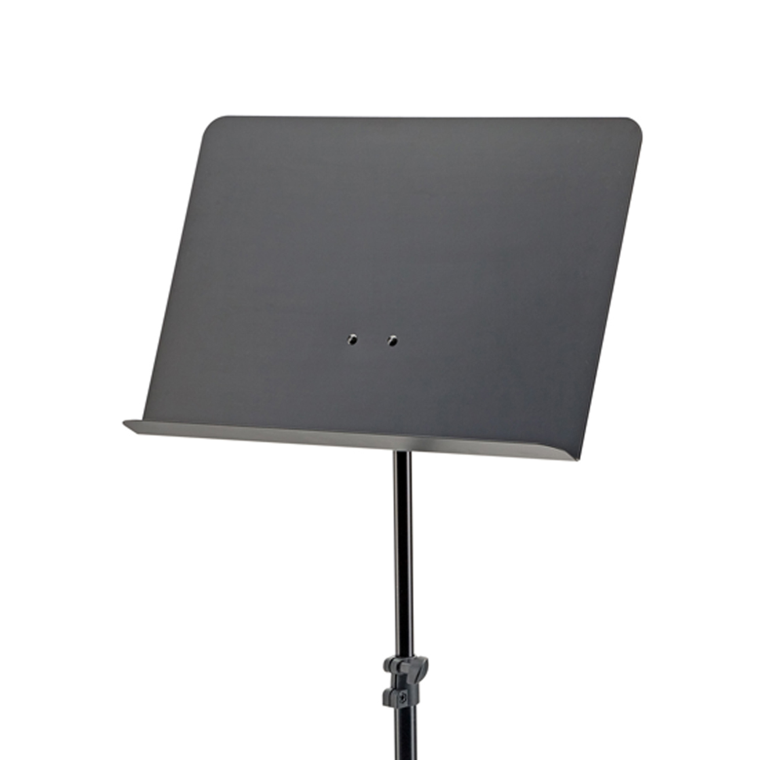 Das K-M 11870 ist ein pulverbeschichtetes Aluminium-Notenpult mit Stahlplatte. Die Notenpultplatte wird mit einem leicht zu bedienenden Schnellverschluss am Stativ befestigt bzw. wieder gelöst. Dadurch ist das Pult schnell und einfach auf- und wieder abgebaut.
