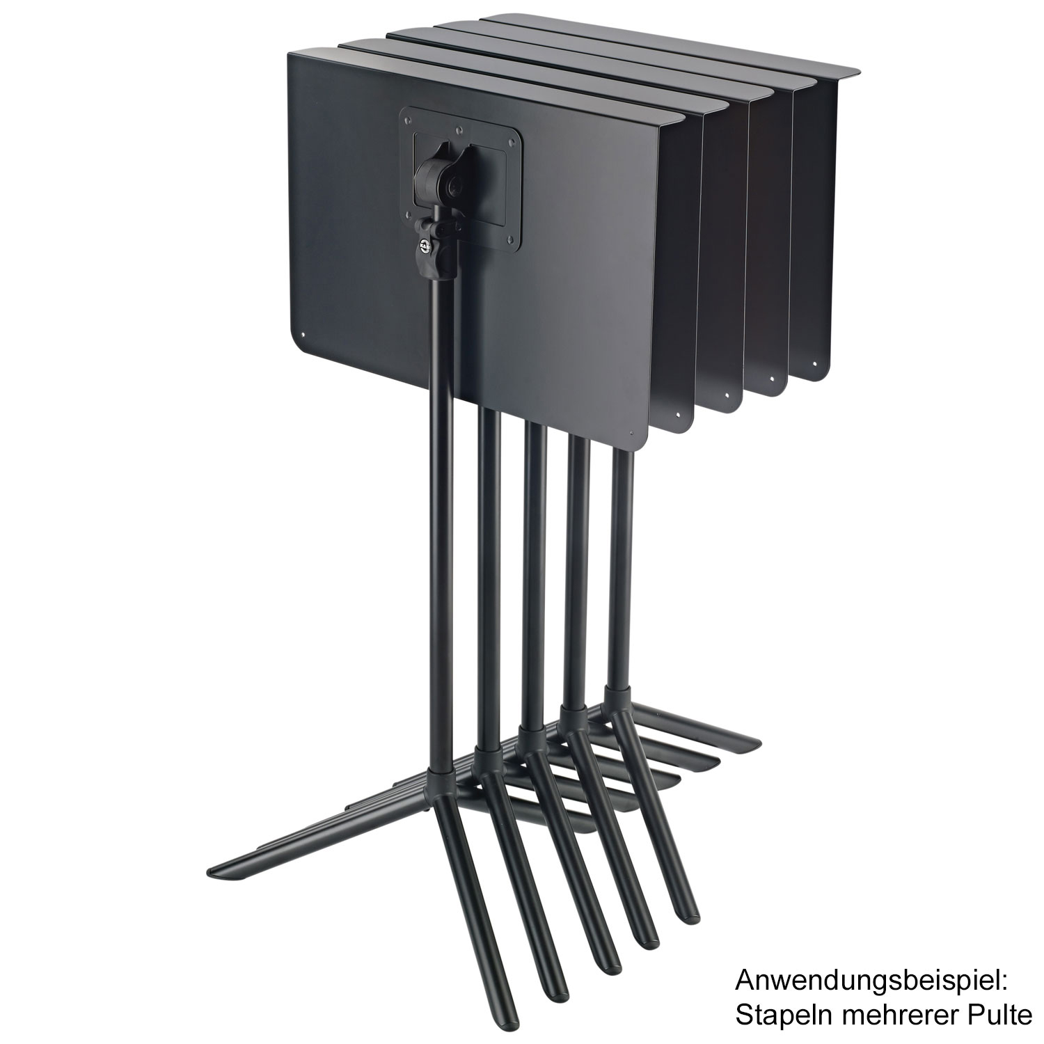 Das K&M 11930 Orchester-Notenpult ist speziell für Einrichtungen wie Schulen, Konzertsäle und größere Veranstaltungen ausgelegt. Überall wo mehrere Orchesternotenpulte schnell auf- und abgebaut sowie platzsparend gelagert werden müssen, ist dieses stapelbare Pult ideal.