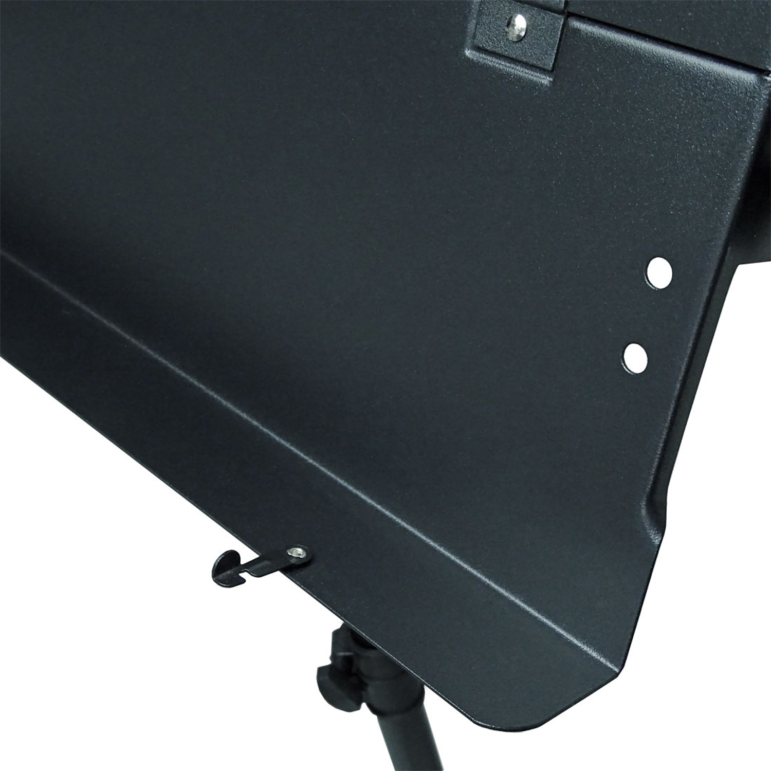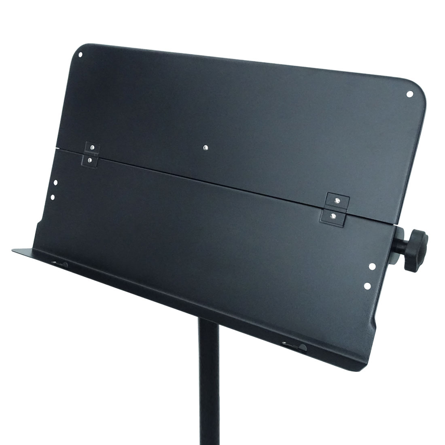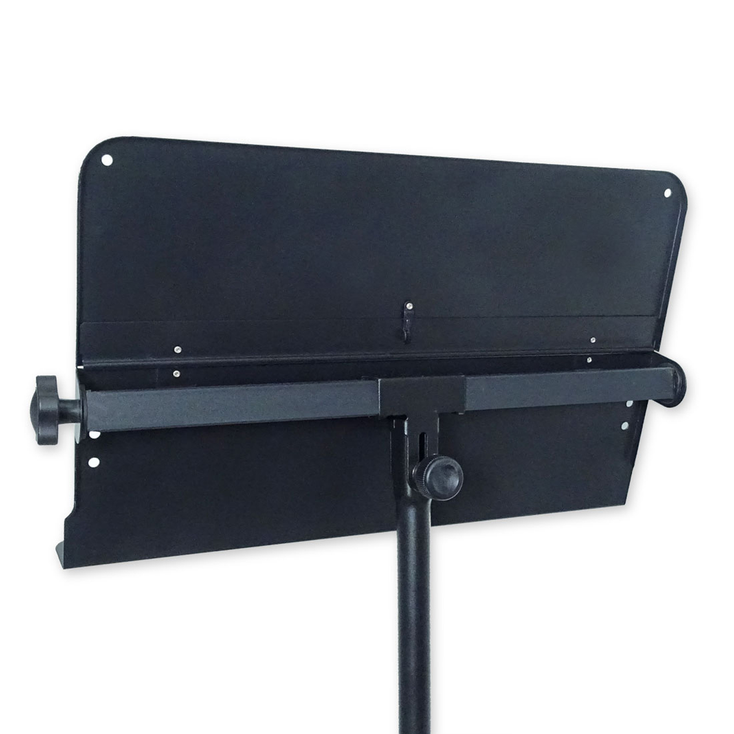 Der Neigungswinkel der Notenablage kann dabei stufenlos zwischen senkrechter und waagrechter Position eingestellt werden. Dadurch bietet das Dirigentenpult für jede Situation und Ausrichtung den optimalen Blickwinkel auf Ihre Notenblätter.