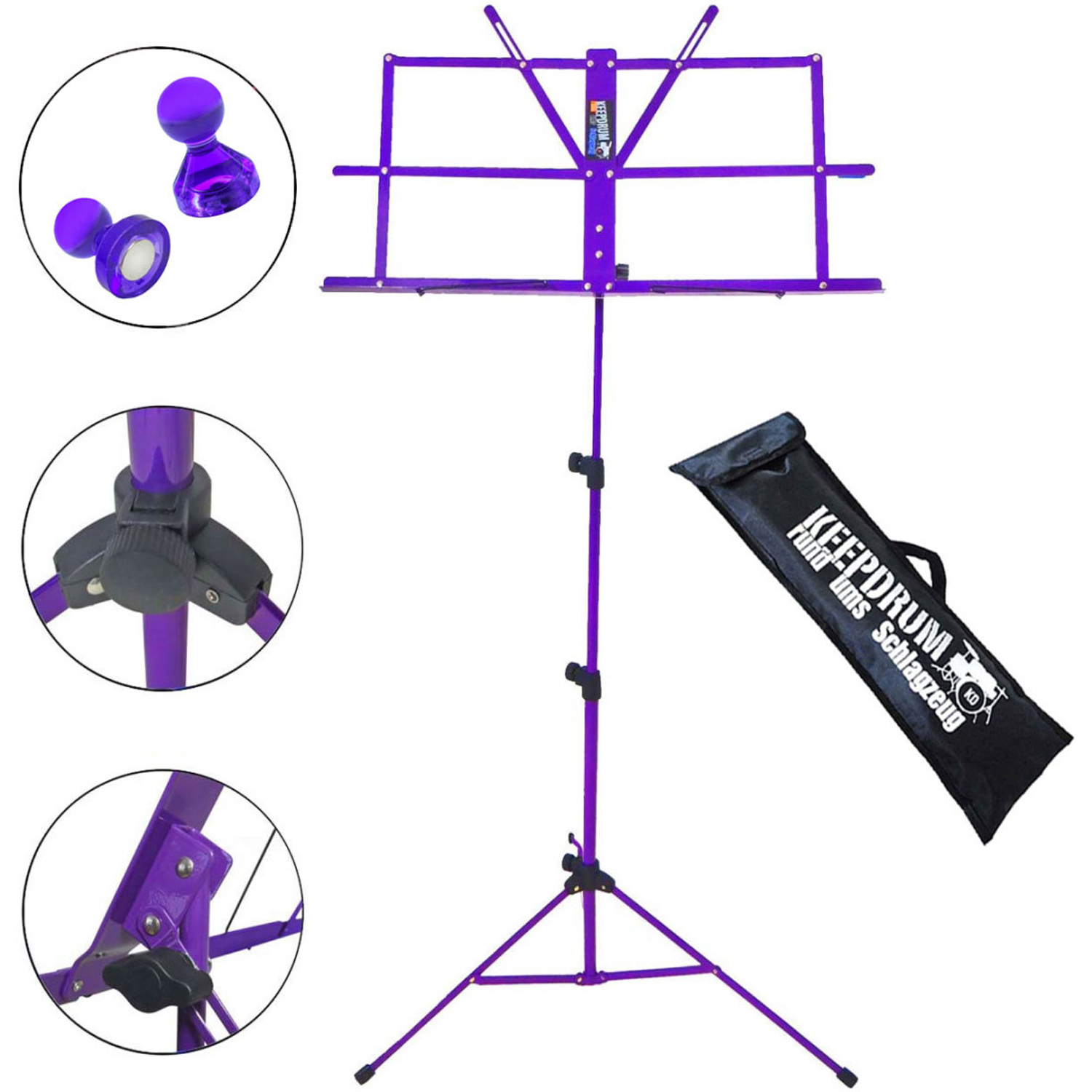 Der keepdrum MUS2 Notenständer ist speziell für Kinder gedacht da er sehr einfach aufzubauen ist. Die Notenauflage kann bei diesem Modell mit einer einzigen Bewegung aufgeklappt werden. Der Notenständer ist robust gebaut und hat dabei lediglich ein Gewicht von 1kg. Die Höhe ist von 650-1350mm einstellbar. Für den Transport zum Musikunterricht wird eine gepolsterte Tragetasche mit Tragegurt mitgeliefert.