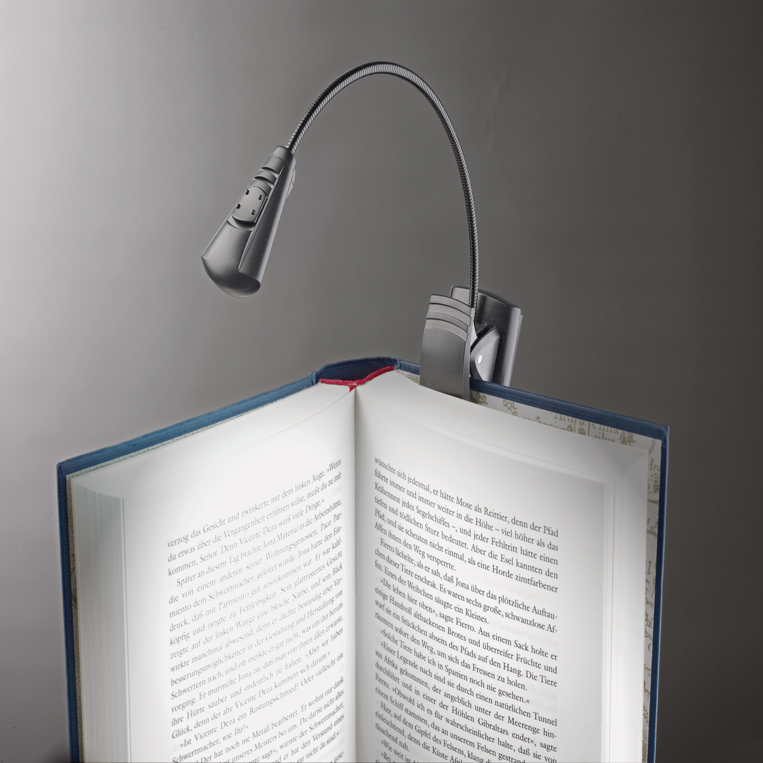 Der Schwanenhals der Leuchte ermöglicht mit seiner Länge von ca. 200mm eine optimale Ausrichtung des Lichts. Die LED-Leuchte liefert eine Helligkeit von 800 Lux mit einer Leuchtdauer von bis zu 40 Stunden. Eingeschaltet wird die Leuchte über eine Schieberegler-Knopf.