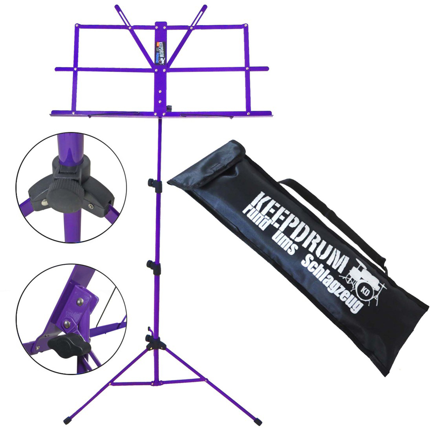 Der keepdrum MUS2 Notenständer ist speziell für Kinder gedacht da er sehr einfach aufzubauen ist. Die Notenauflage kann bei diesem Modell mit einer einzigen Bewegung aufgeklappt werden. Der Notenständer ist robust gebaut und hat dabei lediglich ein Gewicht von 1kg. Die Höhe ist von 650-1350mm einstellbar. Für den Transport zum Musikunterricht wird eine gepolsterte Tragetasche mit Tragegurt mitgeliefert.