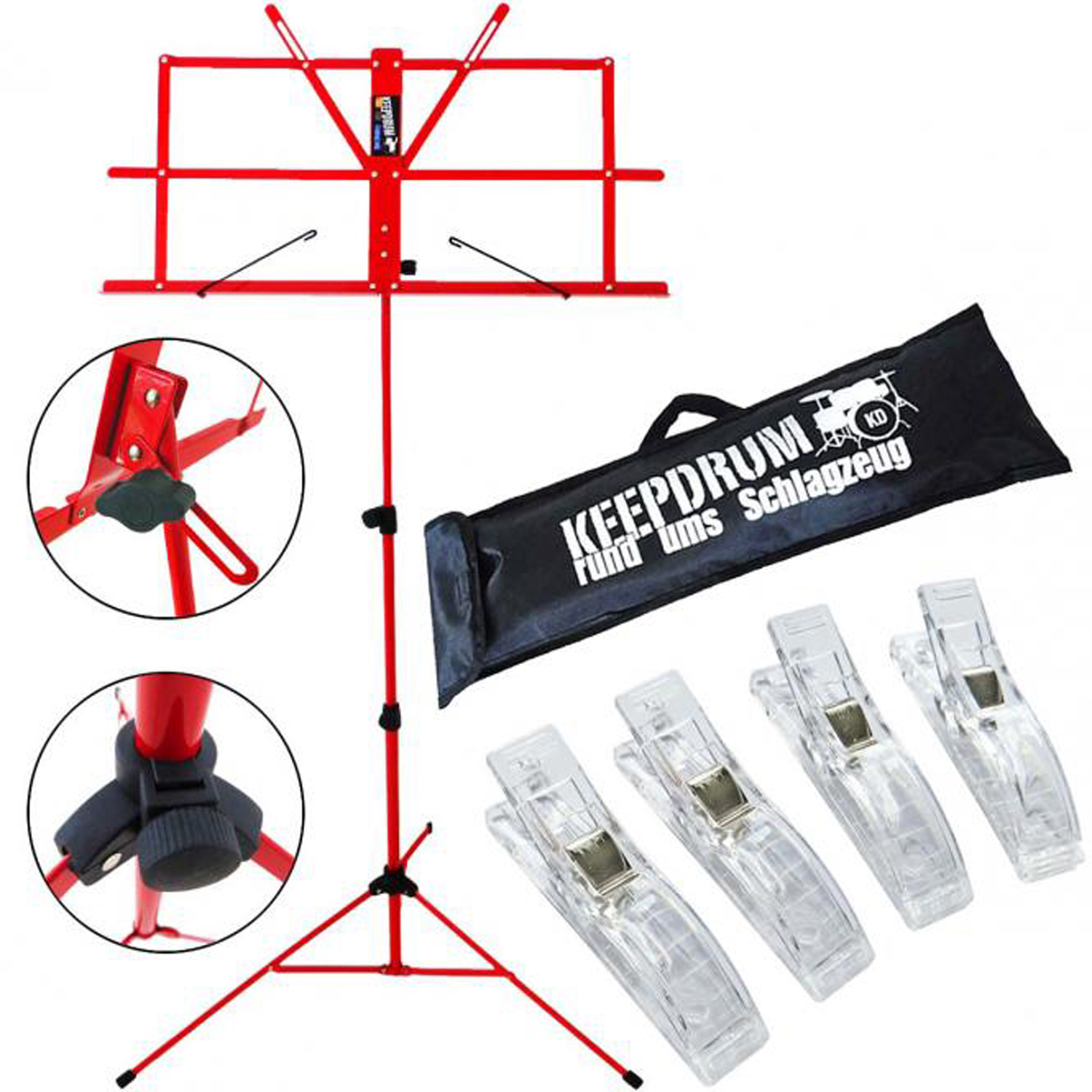 keepdrum MUS2RD Notenpult Rot mit 4 Notenklammern