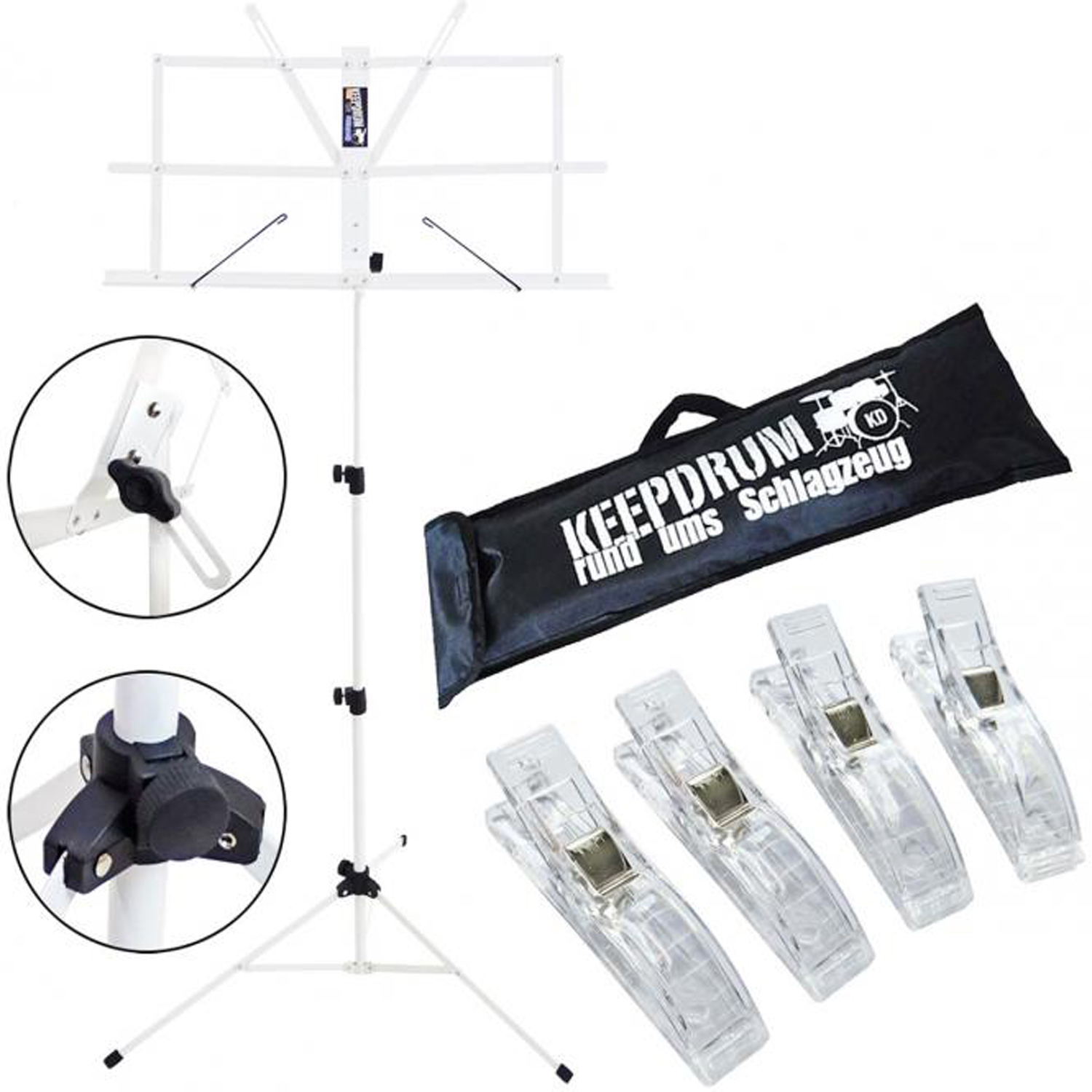 keepdrum MUS2WH Notenpult Weiss mit 4 Notenklammern