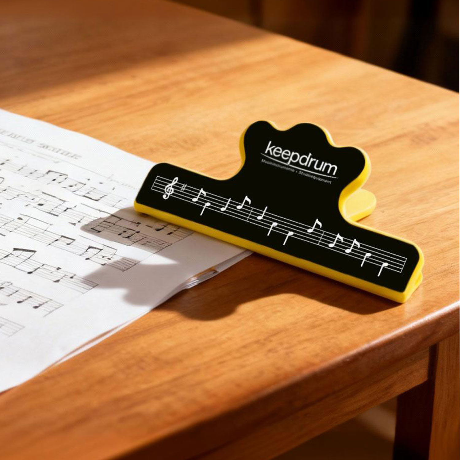 Die keepdrum Notenklammer ist ein praktischer Helfer für Musiker, um