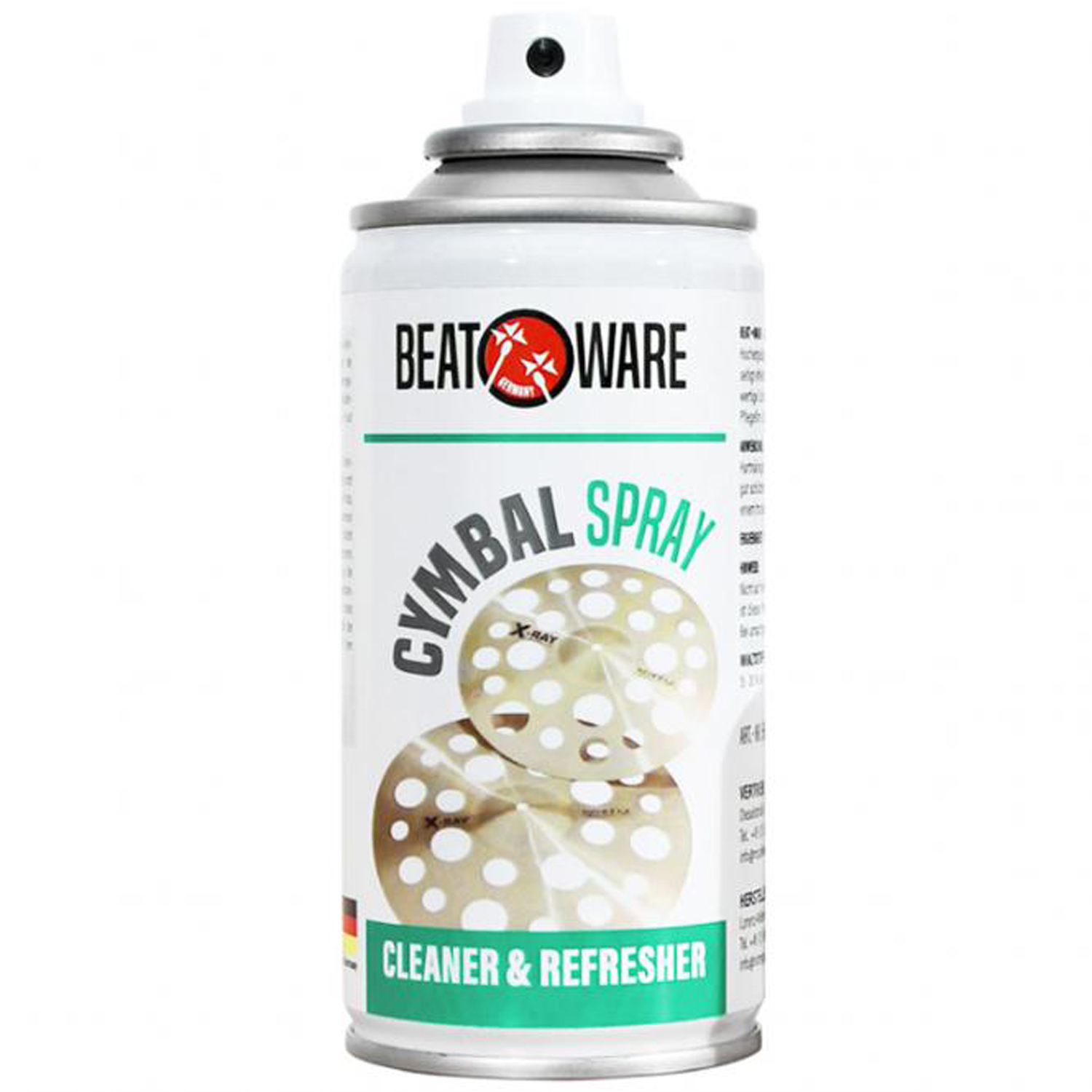 Das BeatWare Cymbal Spray ist ein hoch ergiebiger Reiniger für Becken der materialschonend Verunreinigungen jeder Art beseitigt. Das Spray beinhaltet Schutzkomponenten und bildet dadurch zusätzlich zur Reinigung einen wasser- und schmutzabweisenden Pflegefilm.