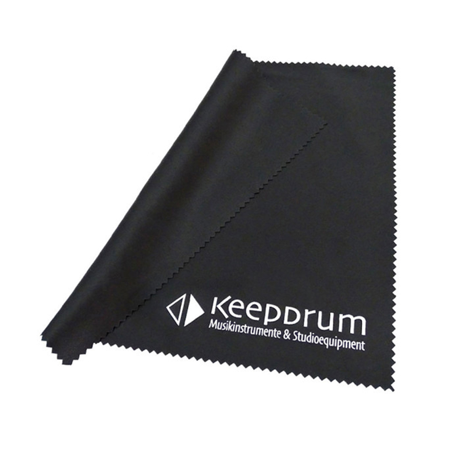 Das schwarze Mikrofaser-Poliertuch ist mit dem attraktiven keepdrum Logo bedruckt.