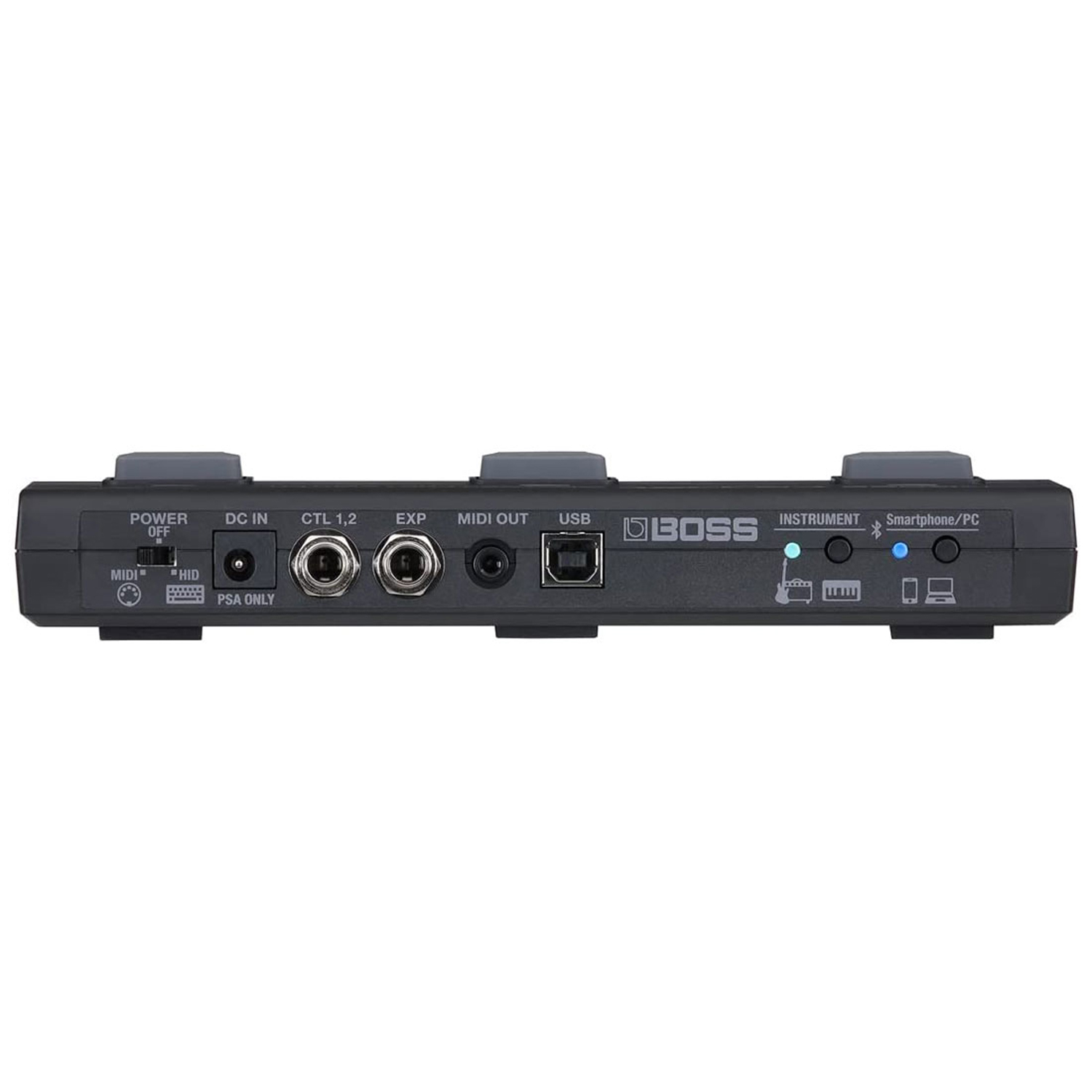 Es können bis zu zwei externe Fußschalter und ein Expression Pedal angeschlossen werden über die Klinkeneingänge. Der USB Port ermöglicht den Einsatz als MIDI-Eingabegerät (HID Modus nicht unterstützt).