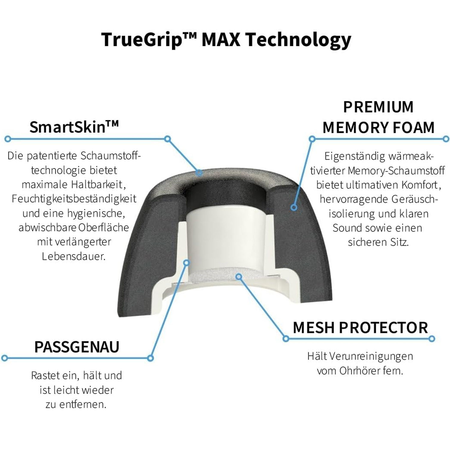Truegrip Max Schaumstoffaufsätze sind im Gegensatz zu der Standard-Version beschichtet und verwenden ein hochwertigeres Material. Dadurch liefern Sie noch besseren Halt, bessere Abdichtung und sind weniger anfällig für Verschmutzungen.