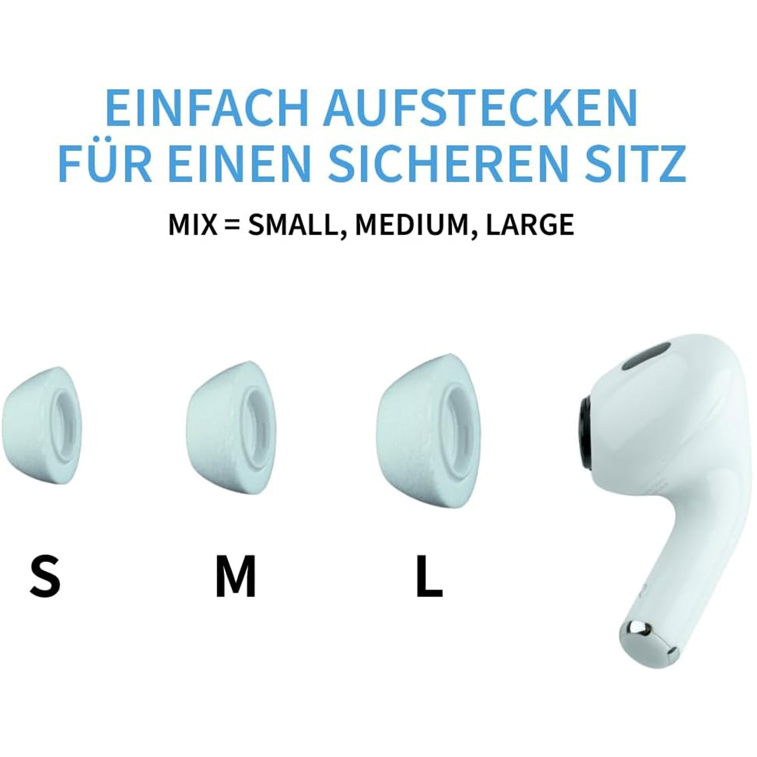 Kopfhörer sicher und bequem im Ohr, wobei die Abdichtung des Gehörgangs verbessert wird.