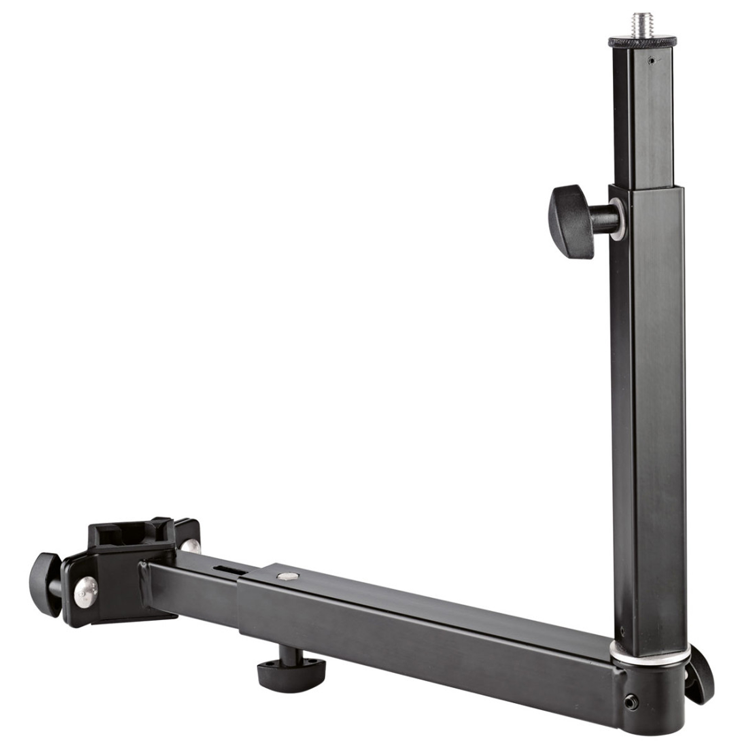 Dieser praktische Universal-Halter eröffnet viele Möglichkeiten durch seinen Gewindeanschluss. Der Halter kann an K&M Keyboard-/ Stagepiano-Klapptisch 18950,18953,18810 und 18820 befestigt werden und ist stufenlos schwenkbar und ausziehbar. Der Abstand des Universalhalters (240-400 mm), sowie seine Höhe (268-418 mm) können angepasst werden. Damit findet sich stets die perfekte Position.
