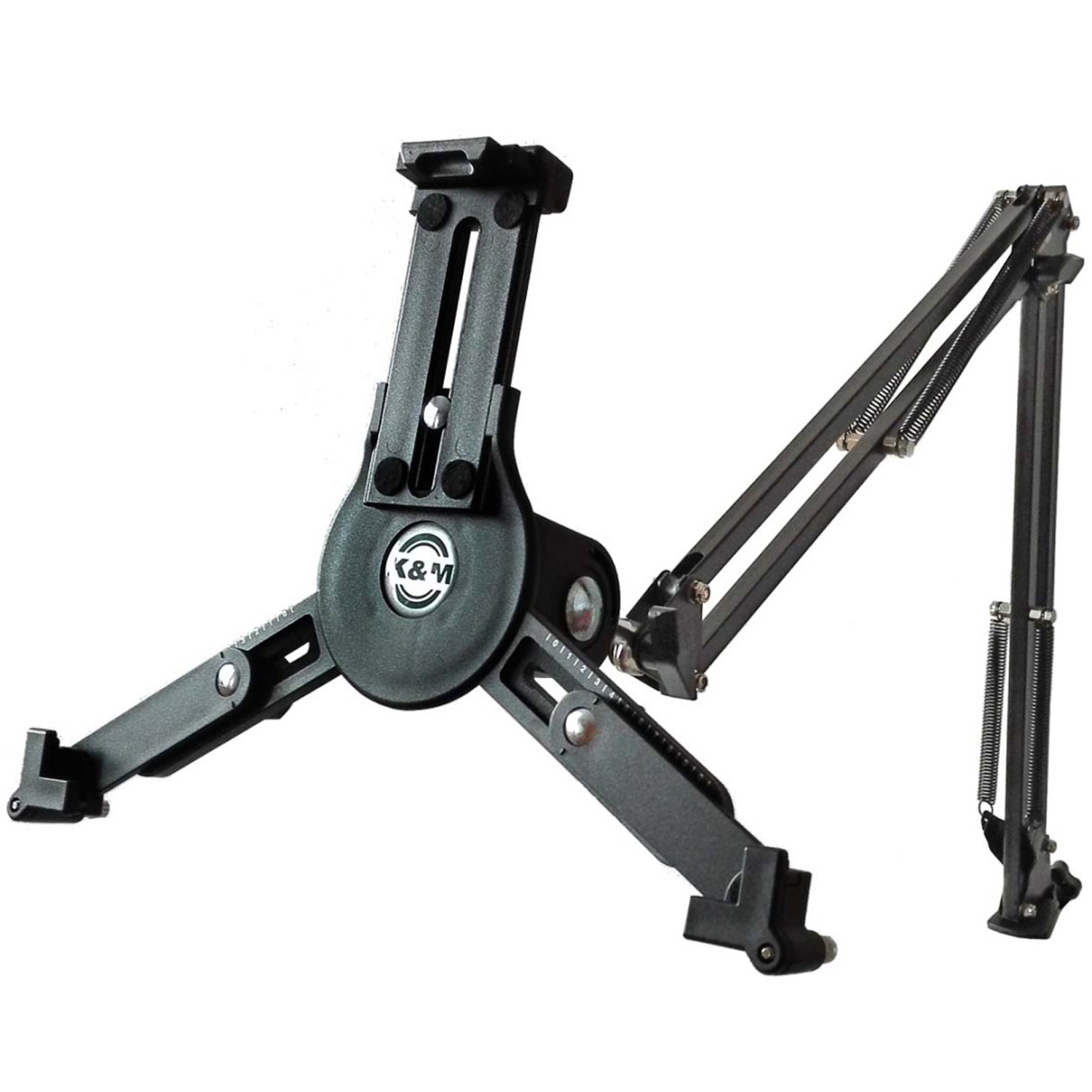 Der 19790 Tablet PC-Stativhalter von K&M ist durch seine stufenlose Größenverstellung für eine Vielzahl von Tablets geeignet. Egal ob auf der Bühne, im Proberaum oder zu Hause - auf diesen Halter ist Verlass durch optimalen Halt.