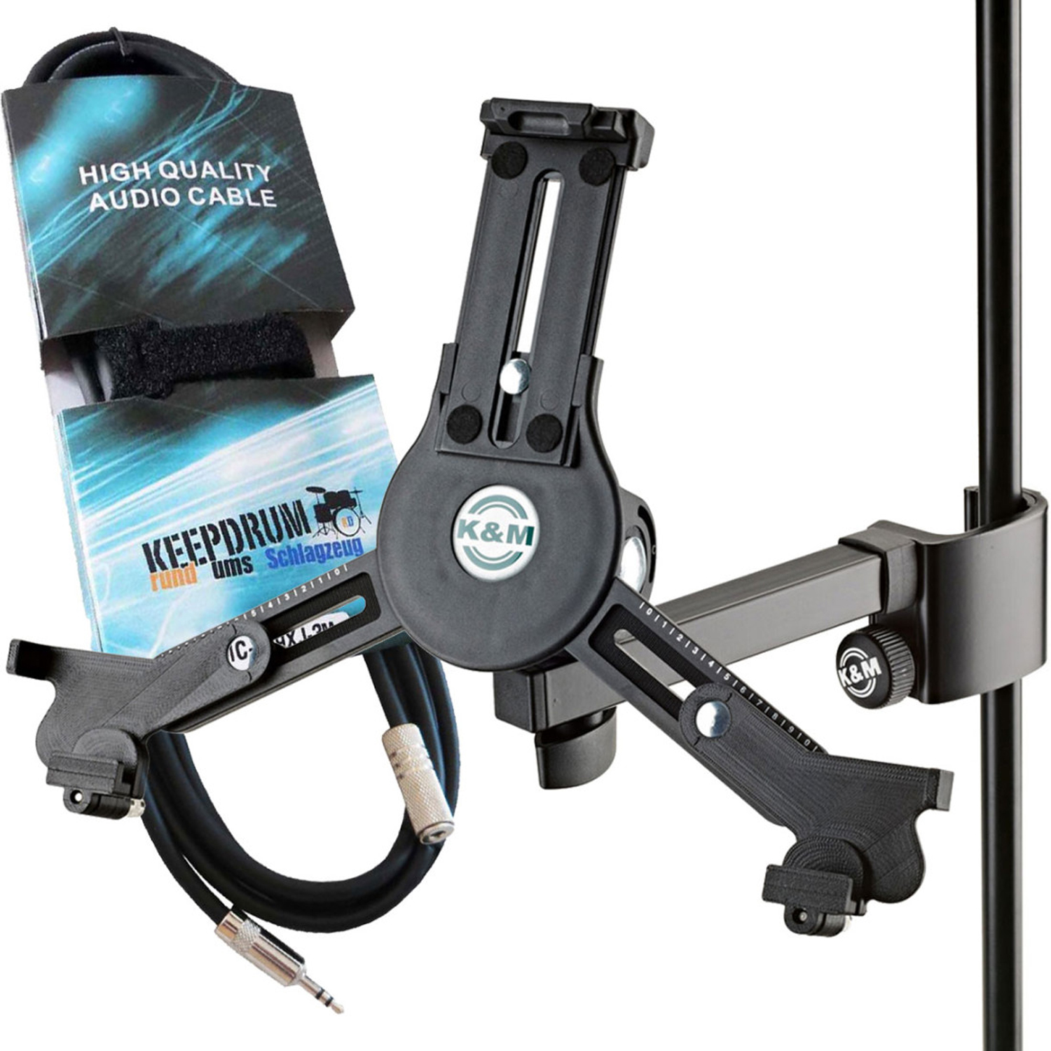 K&M 19791 Tablet-PC-Halter mit 3 m Miniklinken-Kabel