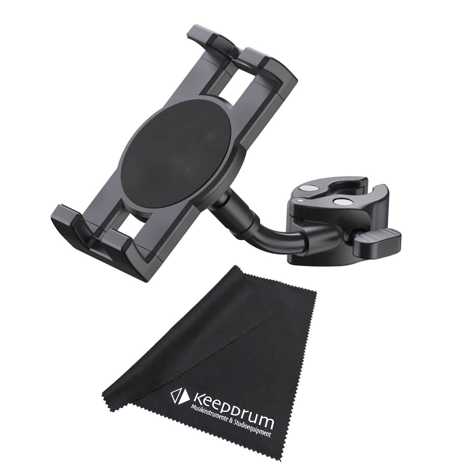 K-M Smartphone-Halter 19764 mit Klemme für Rohre und Stative mit Mikrofasertuch