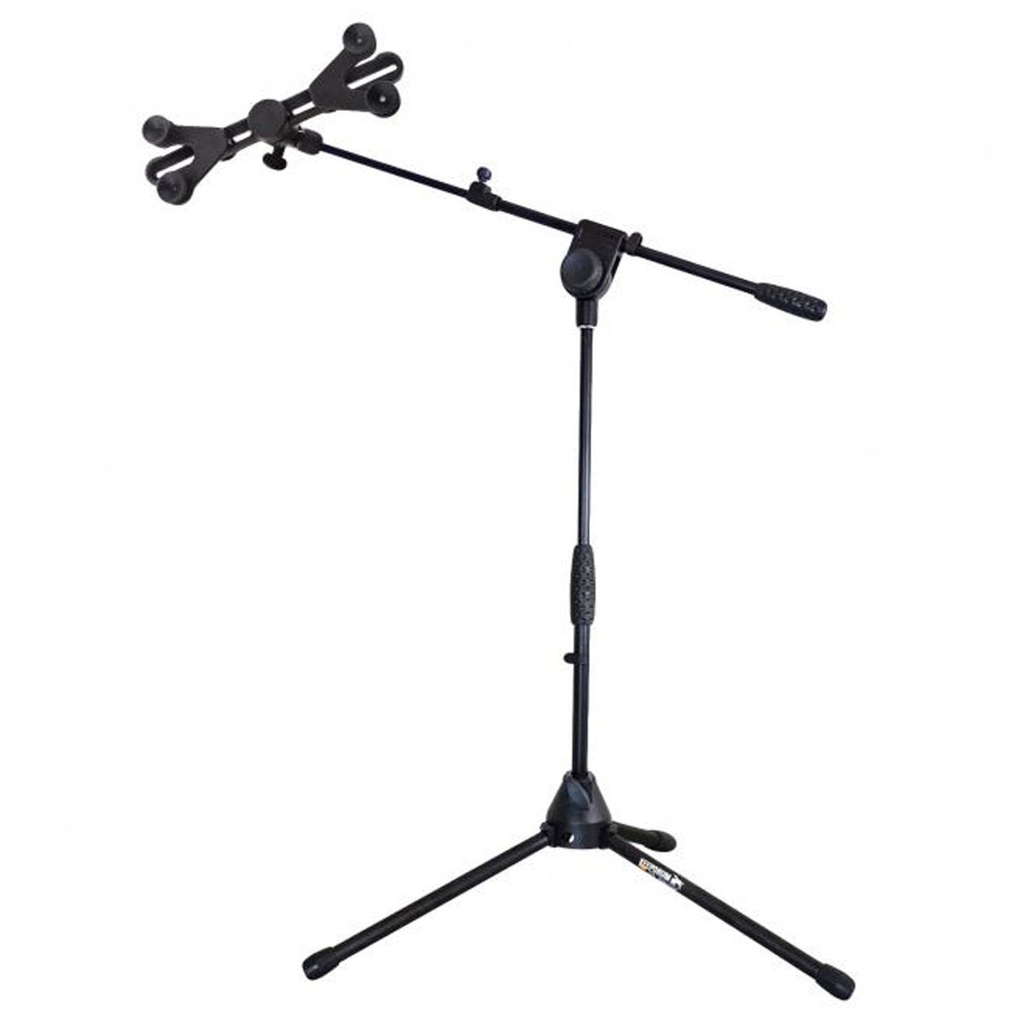 Die keepdrum Tablet-PC Halterung eignet sich für Tablets und iPads mit einer Größe von 7 Zoll bis 14 Zoll. Das Stativ bietet zuverlässigen Halt für Ihr Gerät und kann durch die mitgelieferte Rohrklemme an einem Mikrofonständer (Rohrdurchmesser 10-30mm) montiert werden. In Kombination mit dem halbhohem Stativ EMS013 ist der Tablethalter ideal für das Arbeiten im Sitzen oder bei Recording und Acoustic Sessions.