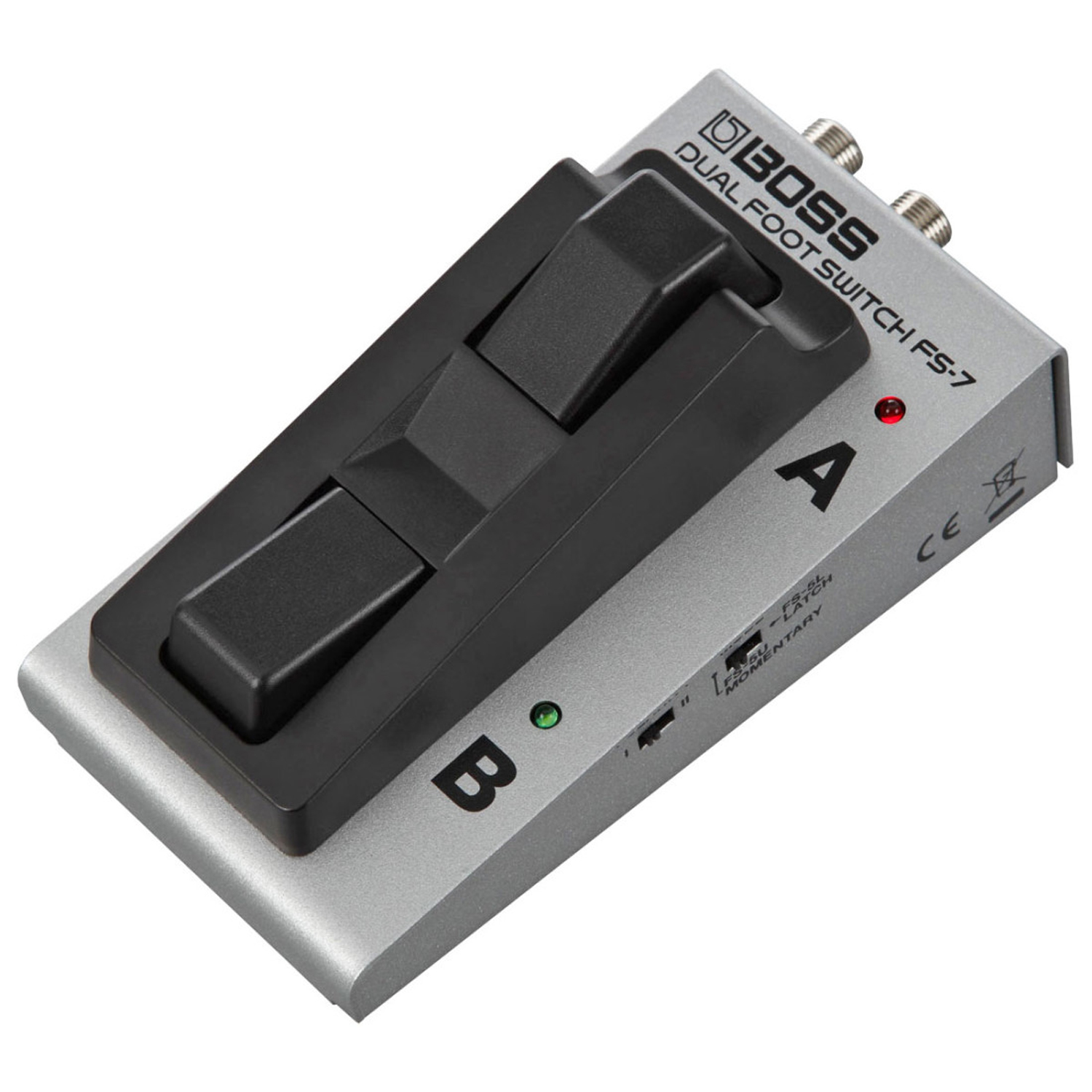 Der Boss FS-7 Fußschalter ist ein sehr kompaktes Pedal mit Stahlgehäuse, das zwei Pedale in einem vereint. Es stehen die Funktionen Tasterfunktion oder Schalterfunktion zur Auswahl. Die gewünschte Funktion wird über den kleinen Wahlschalter an der Seite des FS-7 festgelegt. Ebenso kann die Polarität des FS-7 über einen Auswahlschalter gewählt werden.