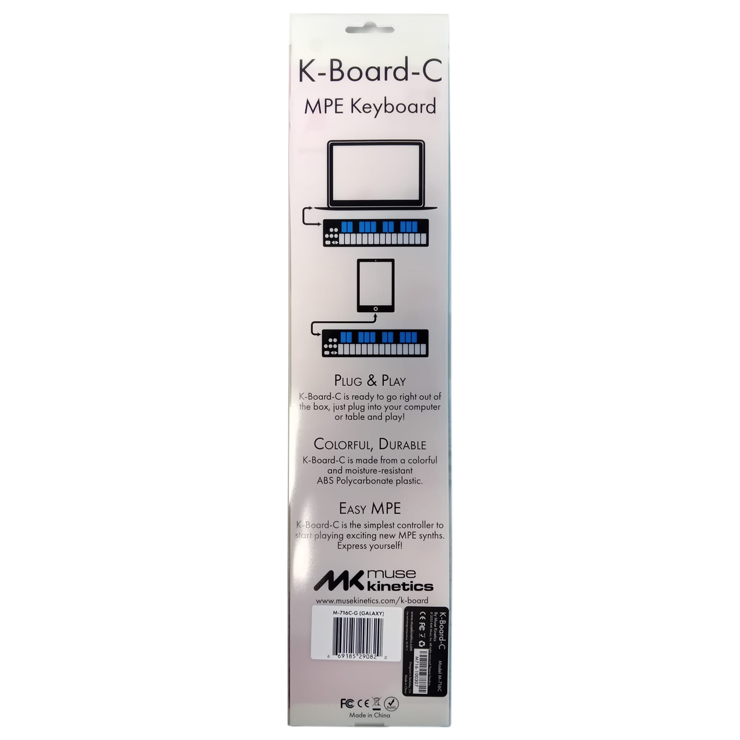 Das Muse Kinetics K-Board-C ist ein tragbarer Mini-MPE-MIDI-Keyboard-Controller, der speziell für Musikproduzenten und Musikkünstler entwickelt wurde. Das Gehäuse aus strapazierfähigem ABS-Polycarbonat sorgt für eine hohe Stabilität und Langlebigkeit.