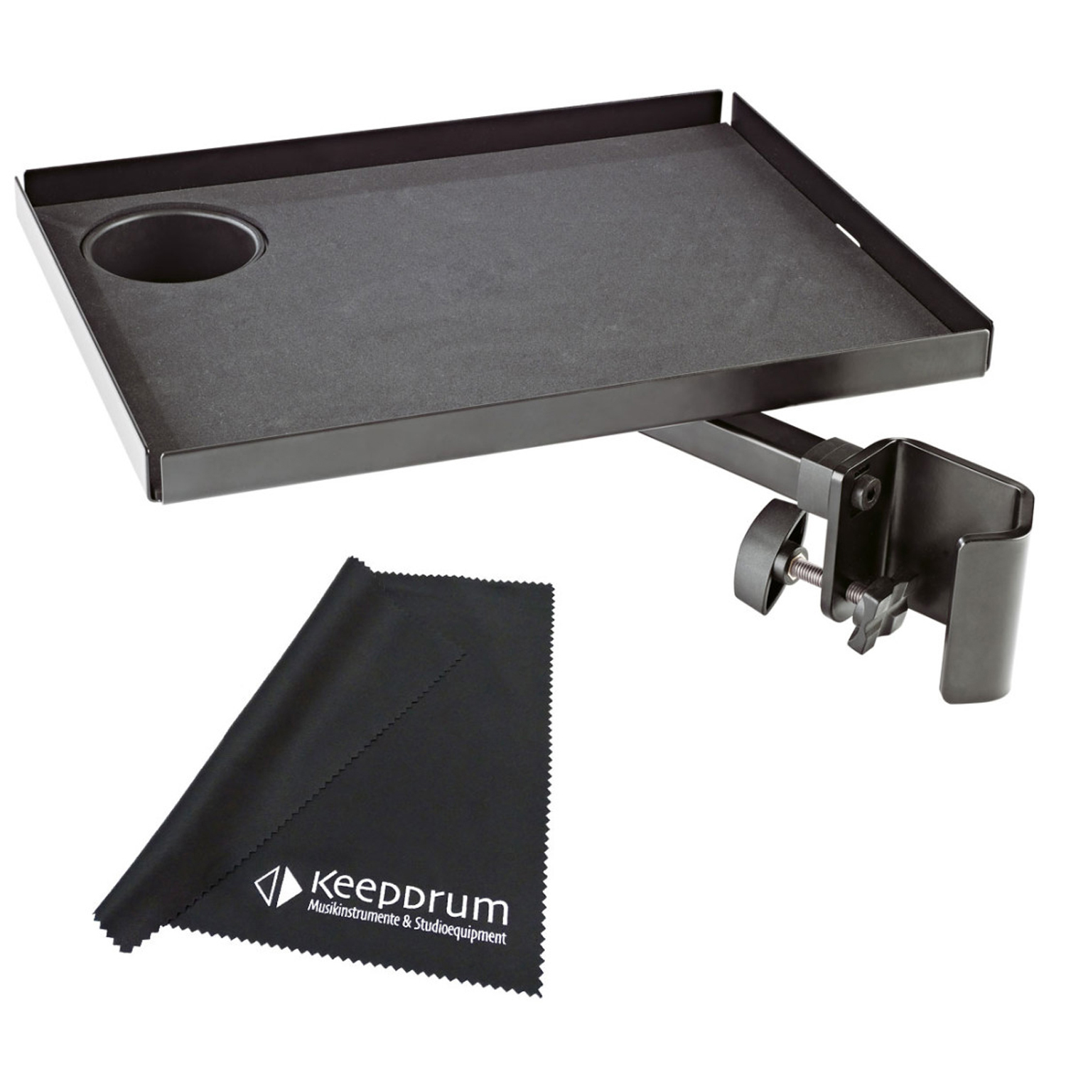 Rohrdurchmesser von 25-42mm angeschraubt werden. Sie eignet sich ideal zum Ablegen elektronischer Geräte wie Audiorekorder, Smartphone, Tablet oder für Controller, Mixer und Percussion-Instrumente (Lieferung ohne Zusatzgeräte).