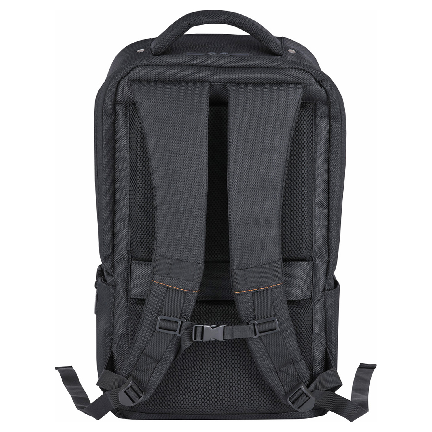 Neben dem Hauptfach gibt es ein Nebenfach für flaches Zubehör wie einen Laptop oder Tablet sowie mehr als zehn kleinere Fächer für weiteres Equipment. Das Hauptfach hat ein anpassbares Klettverschlussband um den Inhalt zu sichern.